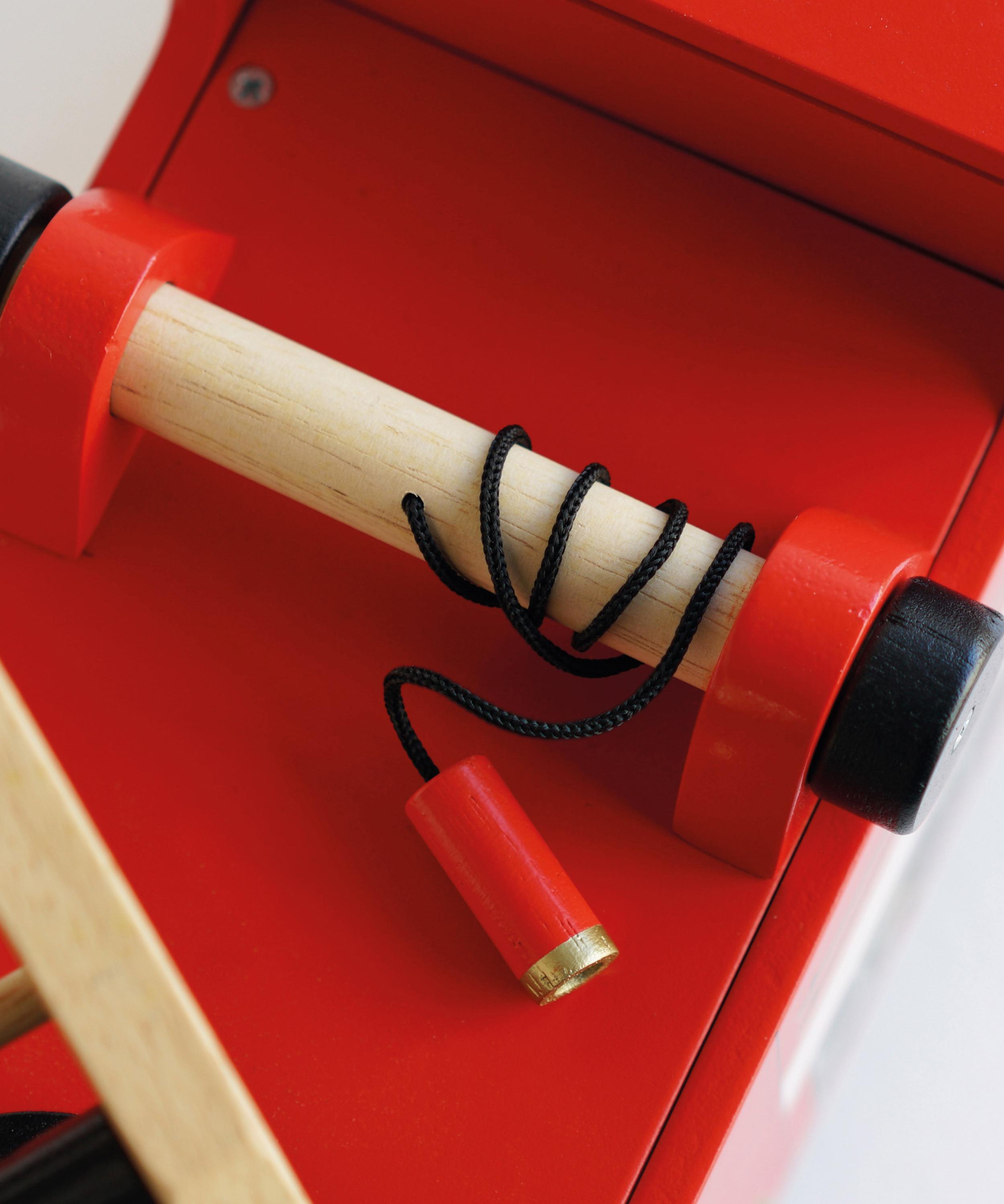Crafted from plywood and decorated with non-toxic paint, this adorable fire engine toy is perfect for facilitating imaginative play. Featuring an extendable rotating ladder, winding hose and a wooden fire, this toy will delight budding firefighters as well as helping to hone fine motor skills. Perfect for developing minds, this mini fire engine will be right at home in any playroom.