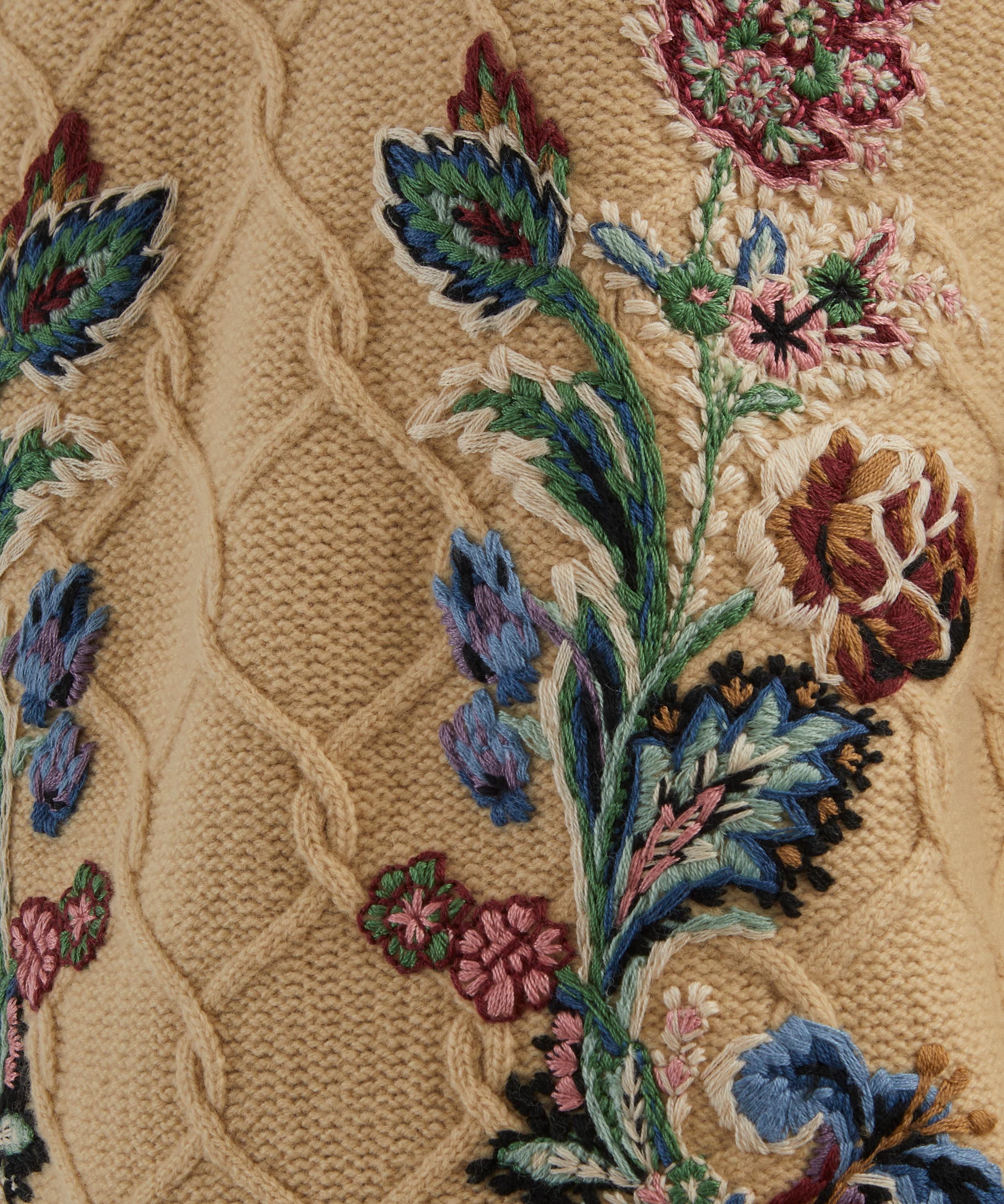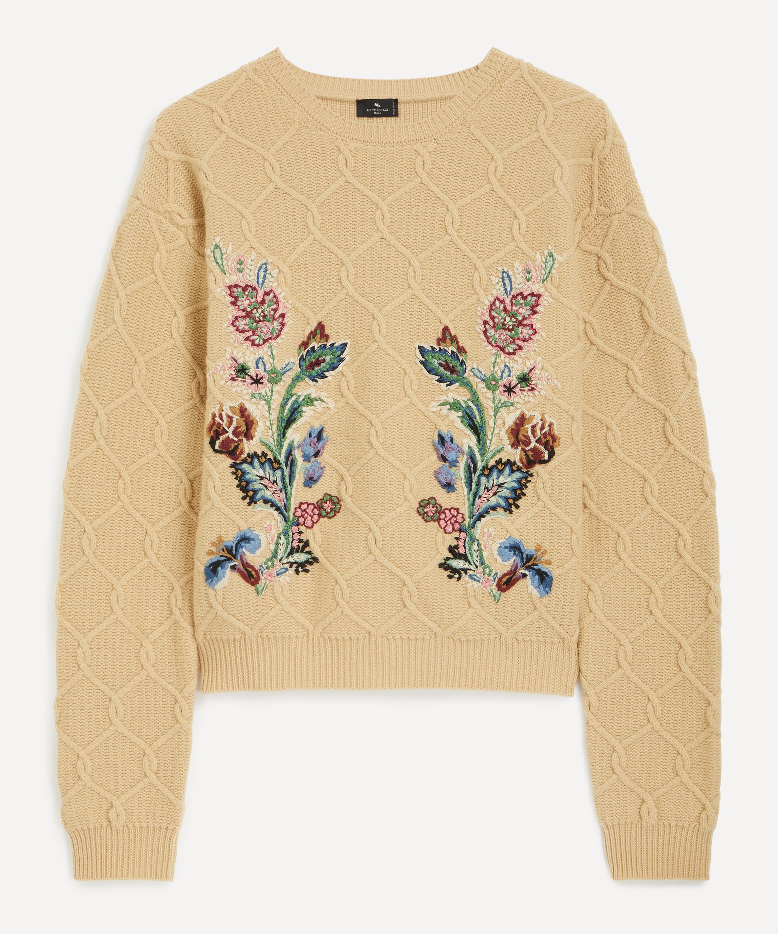 Expertly crafted in Italy from a luxurious wool and cashmere blend, this relaxed jumper is brought to life with raised cable detailing and multi-coloured floral embroidery - bringing bold texture and refined detail to this cold-weather classic.