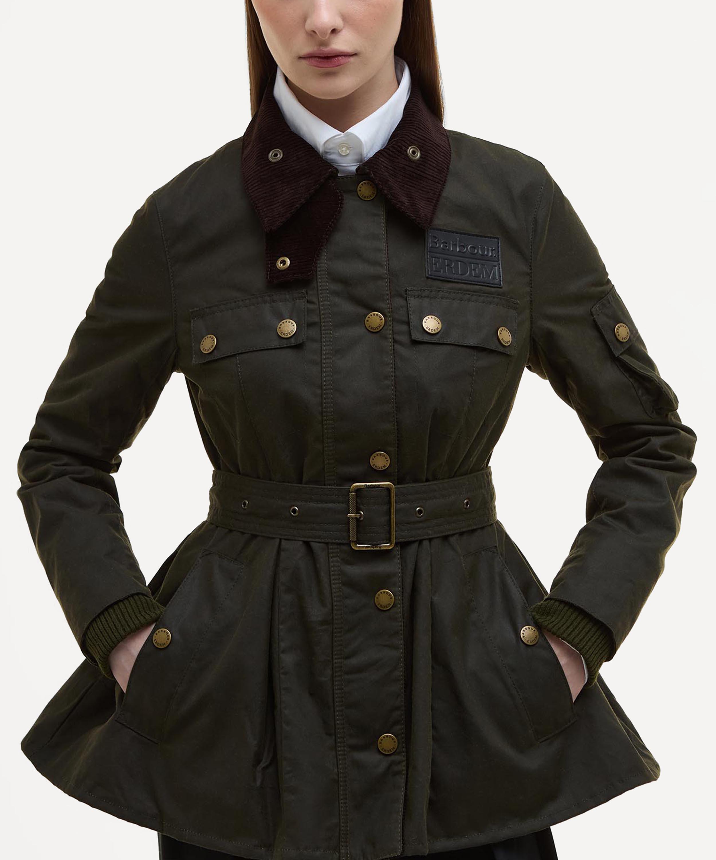 The Constance Waxed Jacket from the Barbour x ERDEM capsule blends ERDEM’s modern femininity with Barbour’s classic practicality an intensely romantic new look