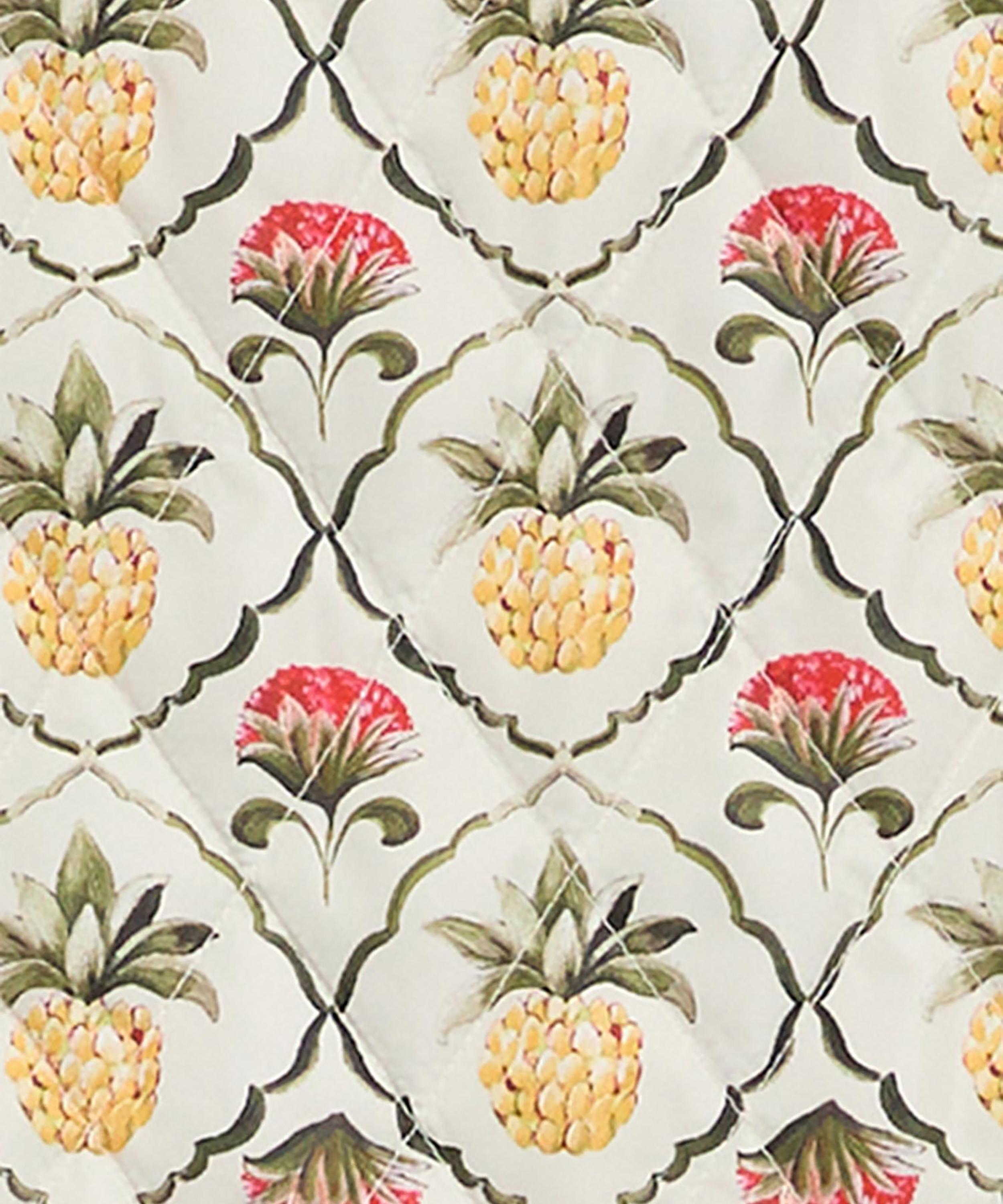 The Barbour FARM Rio Azelia Quilted Jacket brings together British heritage and Brazilian vibrancy. Crafted in a short-length quilted silhouette with a sailor-style collar, it showcases a bold blend of the floral and pineapple print. Complete with a double-breasted fastening, embroidered pocket, and a branded back label offer subtle nods to classic craftsmanship, creating a jacket that honours tradition while celebrating bold, contemporary style.
