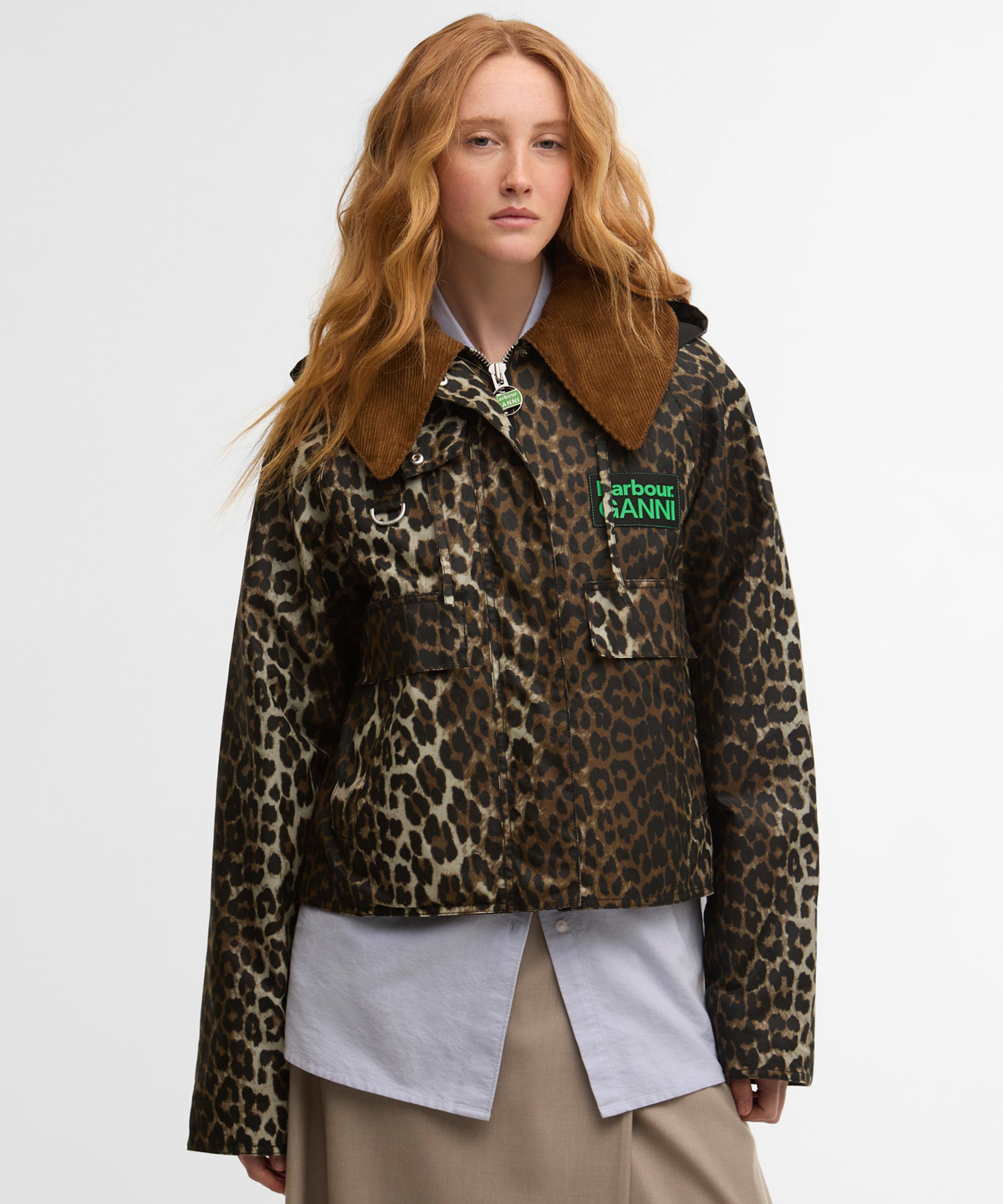 Inspired by the details of Barbour's Spey waxed jacket, the Barbour x GANNI Leopard Print Waxed Anorak puts a Scandi spin on Barbour's signature waxed cotton outerwear.