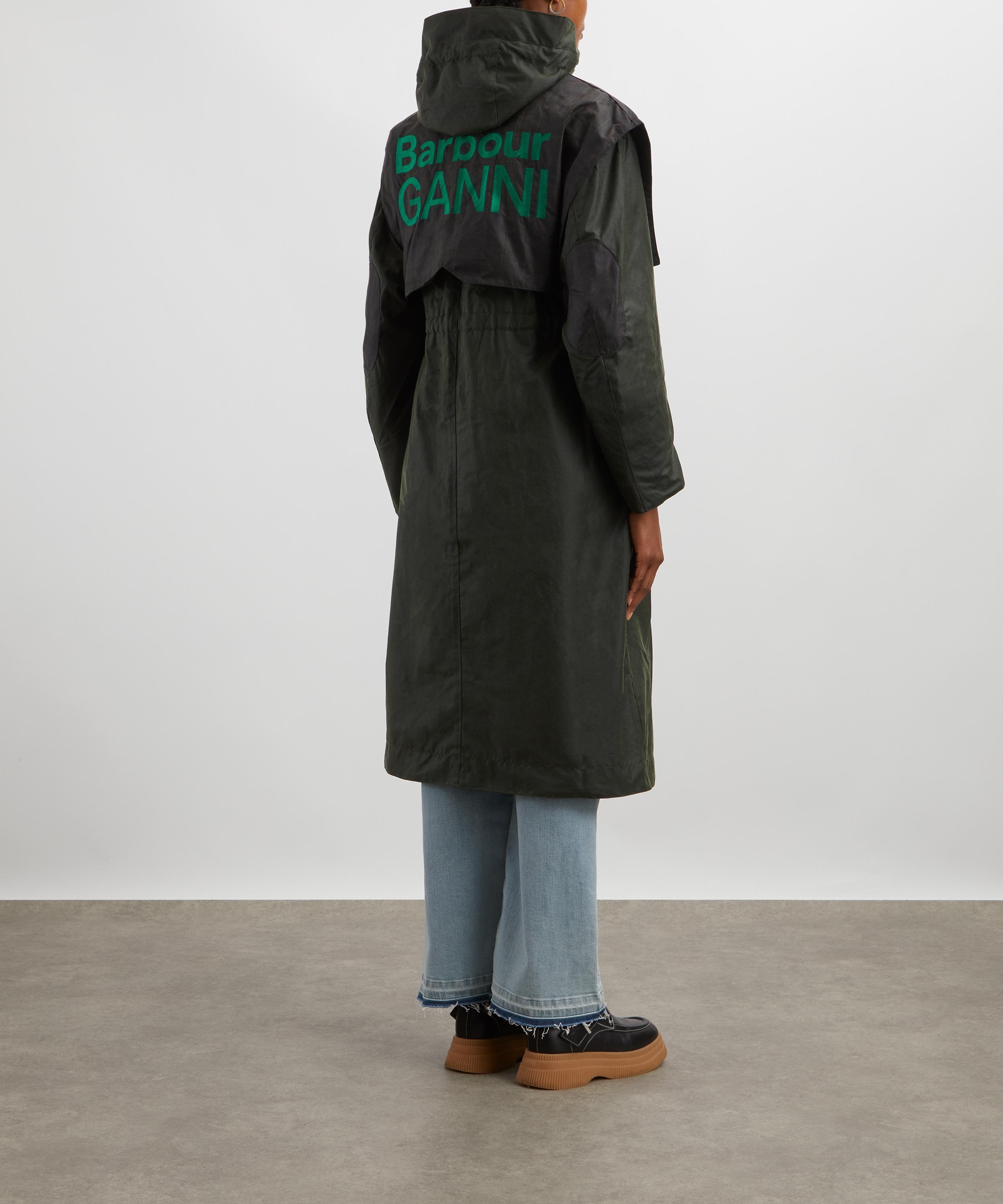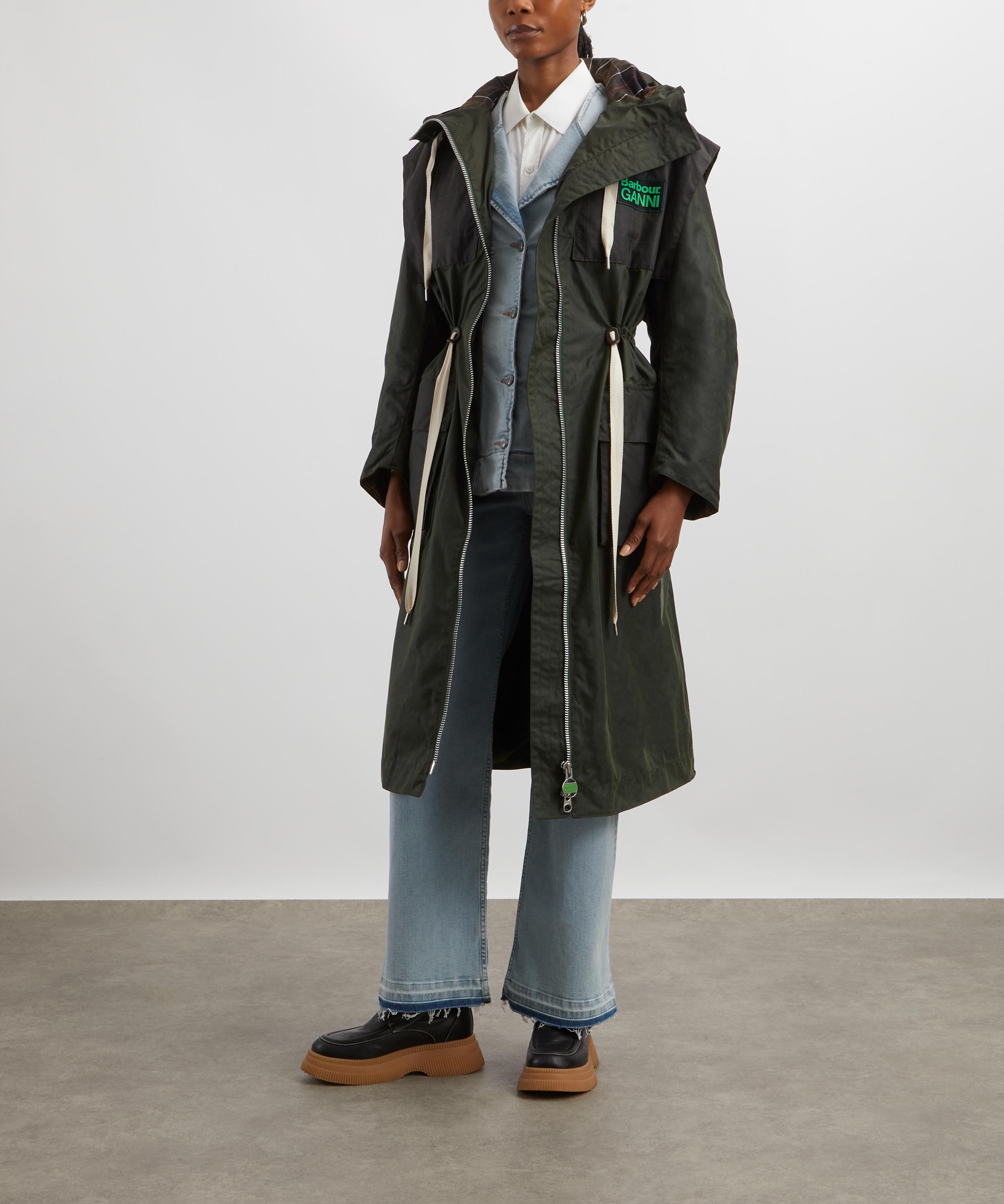 Now in its third season, the Barbour x GANNI collaboration exemplifies both brand's core values in style, practicality, and durability through the Barbour x GANNI Waxed Parka Jacket.