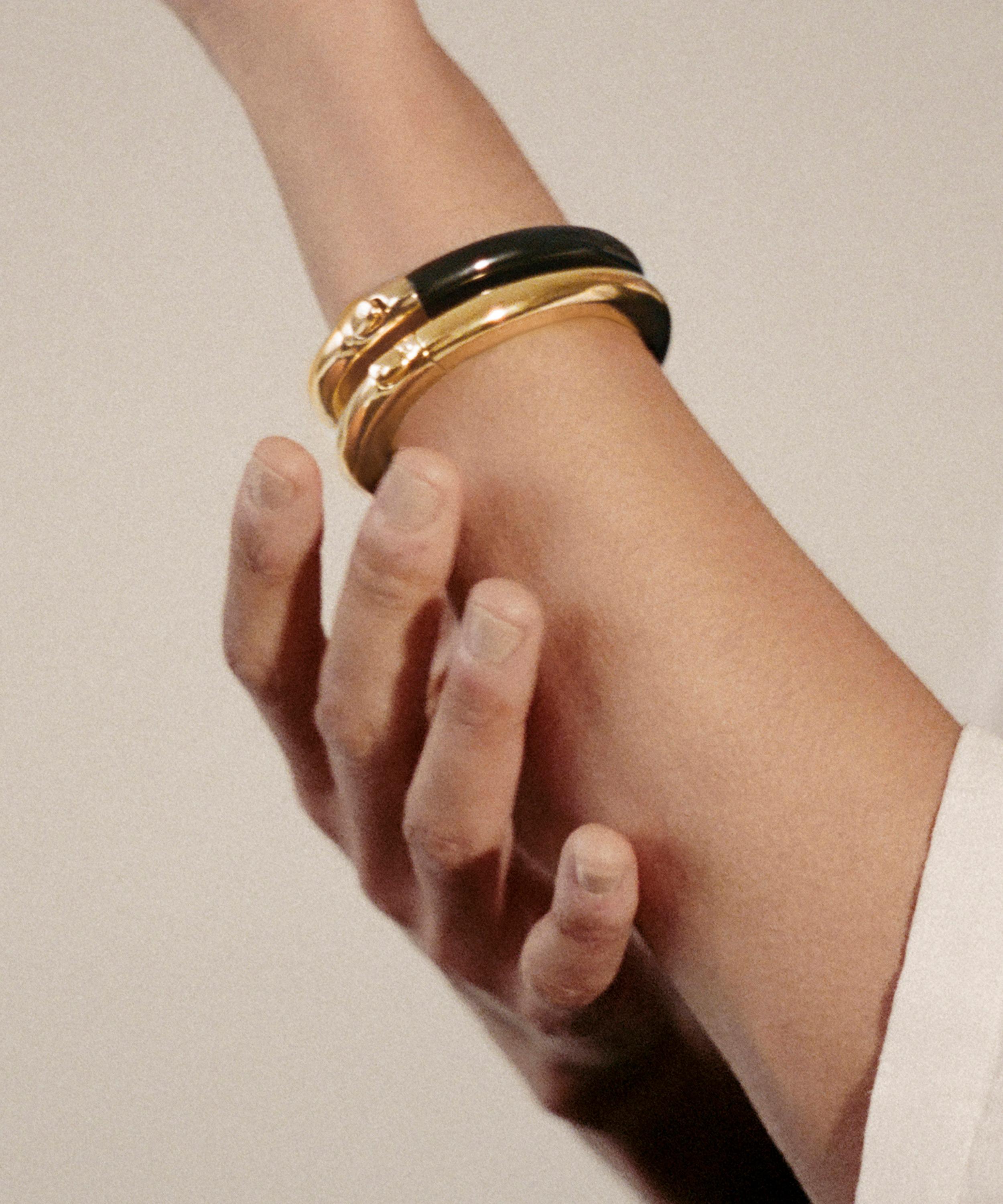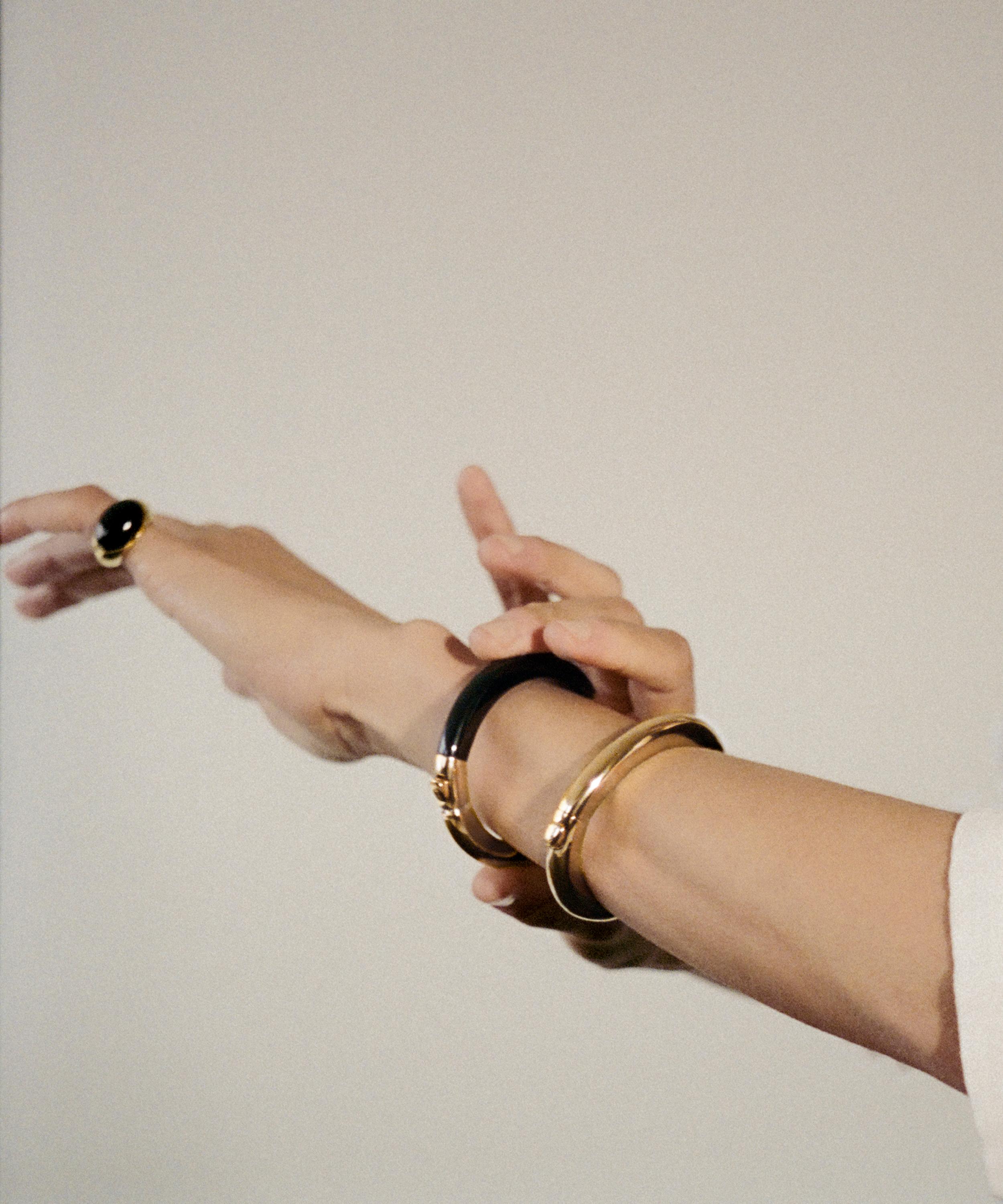 Boasting a classic everyday staple, the Kate Young gemstone bangle bracelet by Monica Vinader is designed in collaboration with celerity stylist Kate Young. This bracelet features a sleek and sculptural bangle adorned with bespoke-cut black onyx in a high-polished finish – ideal for wrist stack curations.