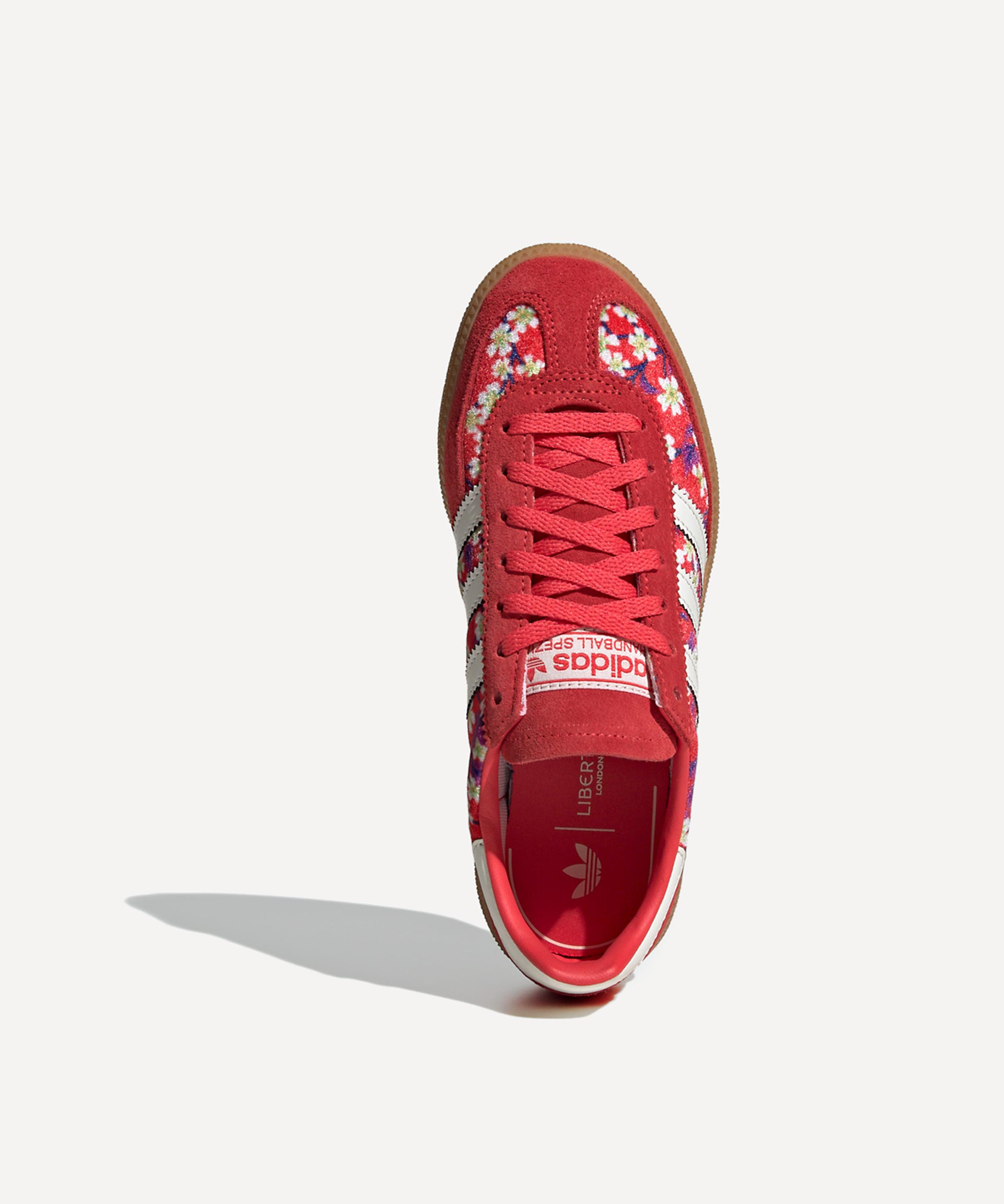 This pair of adidas Handball Spezial shoes for juniors was created in collaboration with luxury department store Liberty London. Complete with a woven tongue label and leather 3-Stripes, it features floral print pops on the iconic low-profile silhouette, while the signature gum rubber outsole provides a retro sporty finish.
