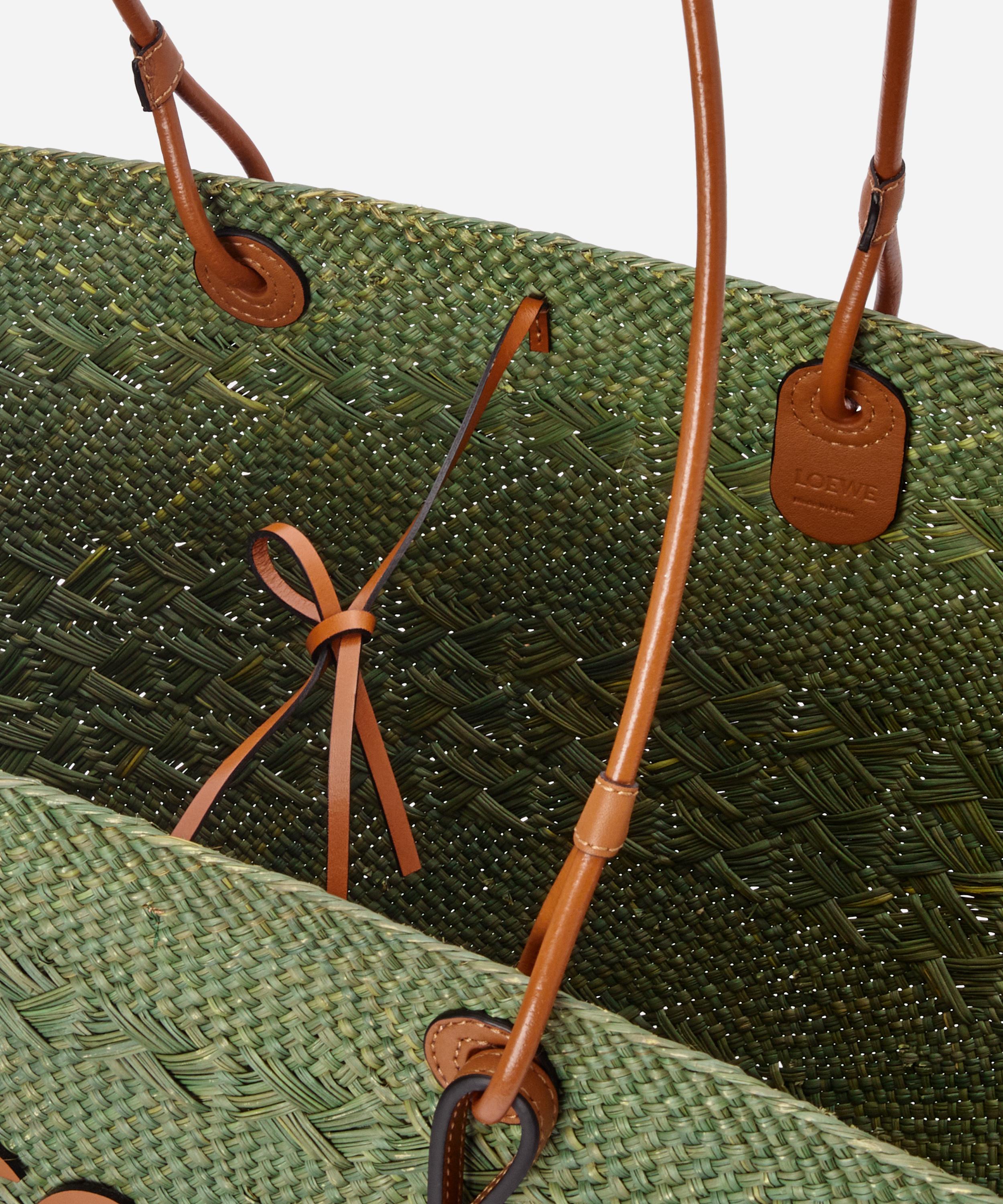 Part of Loewe’s Paula’s Ibiza collection, each piece takes inspiration from Armin Heinemann’s namesake ‘70s Spanish boutique – fusing the store’s iconic care-free hippie sentiment with a Mediterranean colourway. Handwoven from iraca palm, this spacious tote bag showcases a rustic, unlined design with two sets of adjustable leather handles and a large leather plaque featuring the brand's distinctive Anagram logo. Ideal for market shopping, city strolls and trips to the beach.