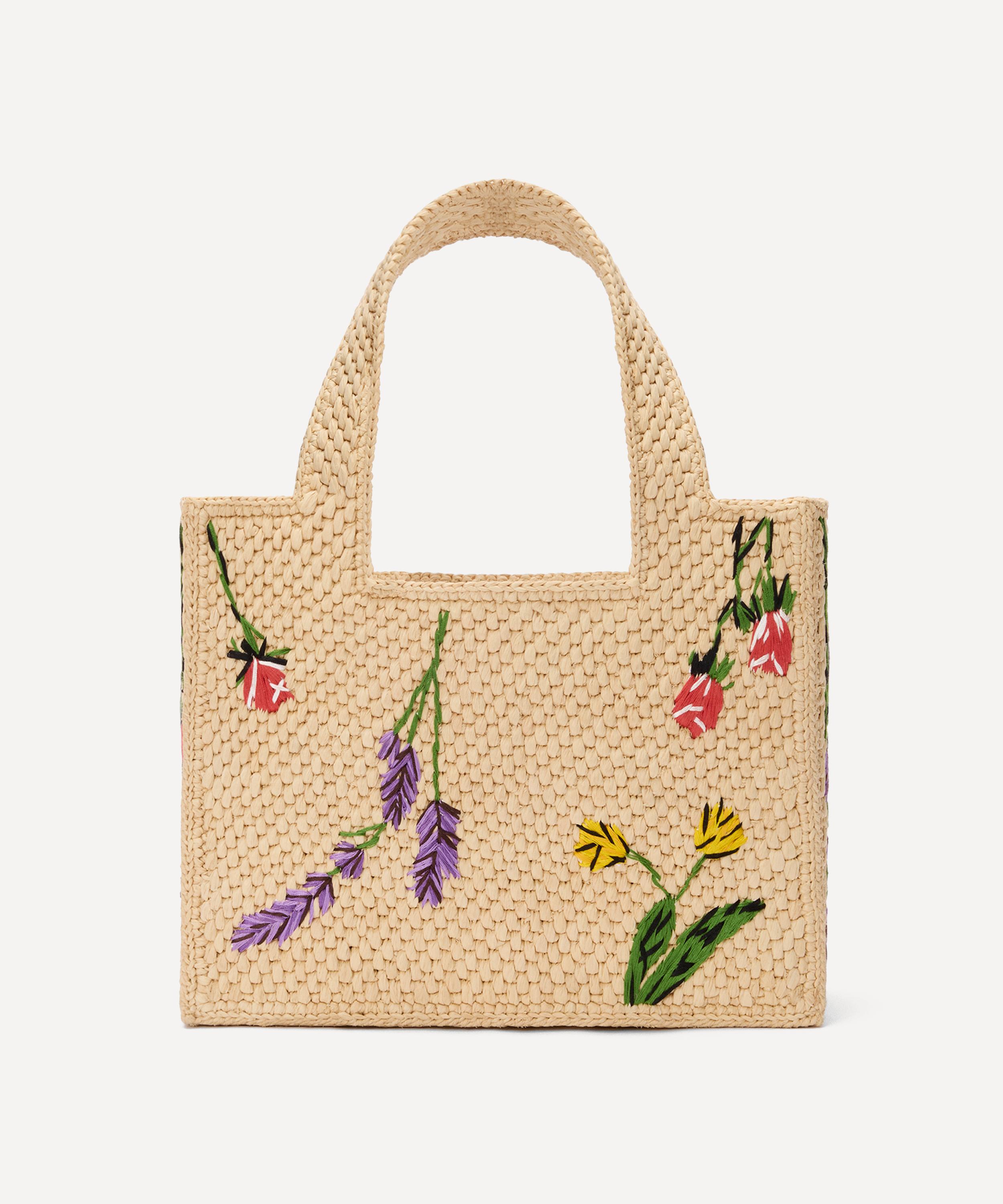 Hand-woven from raffia palm leaves by artisans in Madagascar, this bag showcases a rustic, design with hand-embroidered flowers, two carry handles and the brand’s signature logo to the front. Ideal for market shopping, city strolls and trips to the beach, this spacious piece is perfect for toting all your daily essentials in true Mediterranean style.