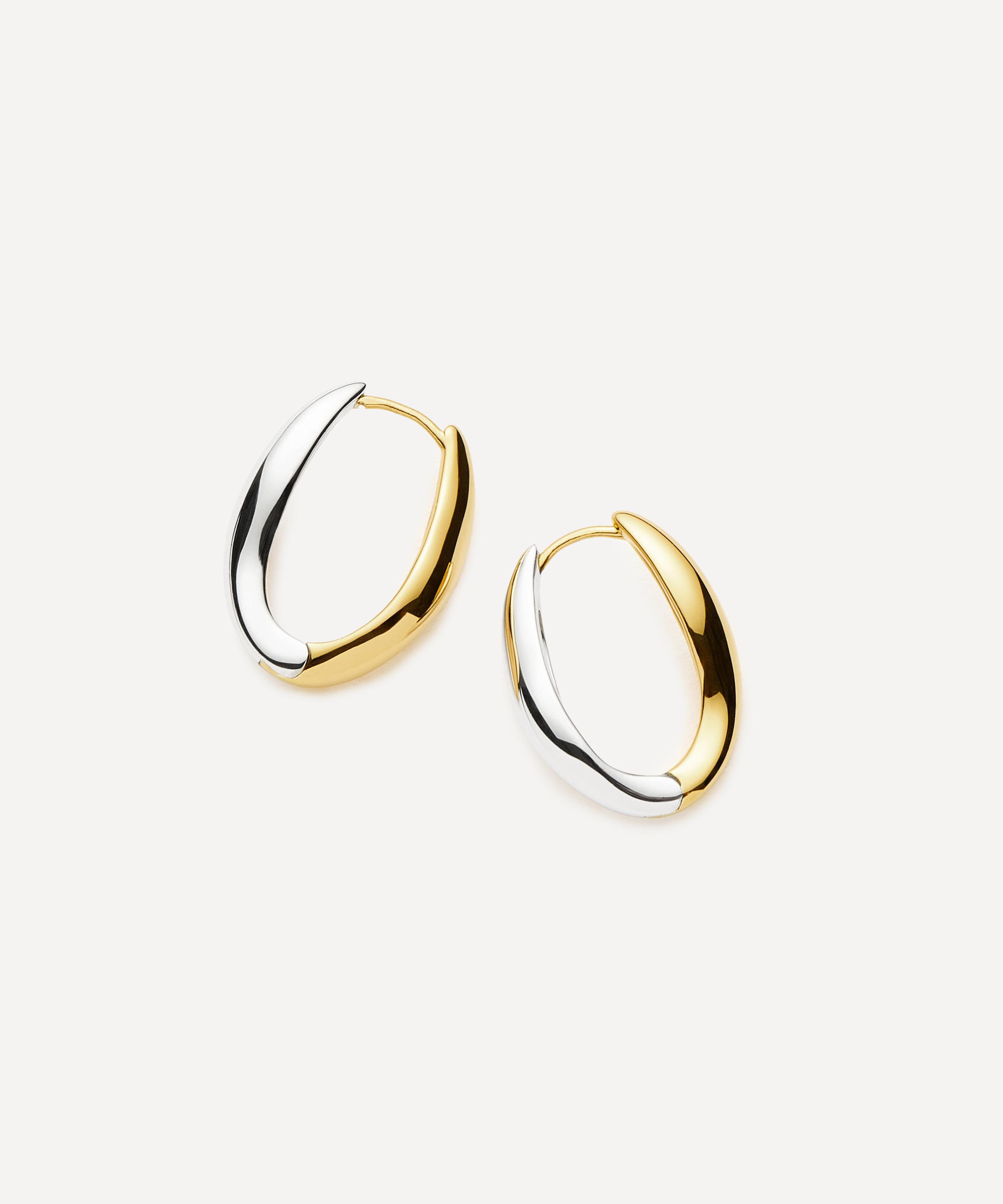 Made in collaboration with creative SAVISLOOK, this pair feature two large hoops, each showcasing an organic, fluid silhouette in a two-tone design composed of 18ct gold-plated brass and rhodium-plated brass. Style them solo, incorporate into a curated ear stack or team with other mixed metal jewellery pieces for an eclectic look.