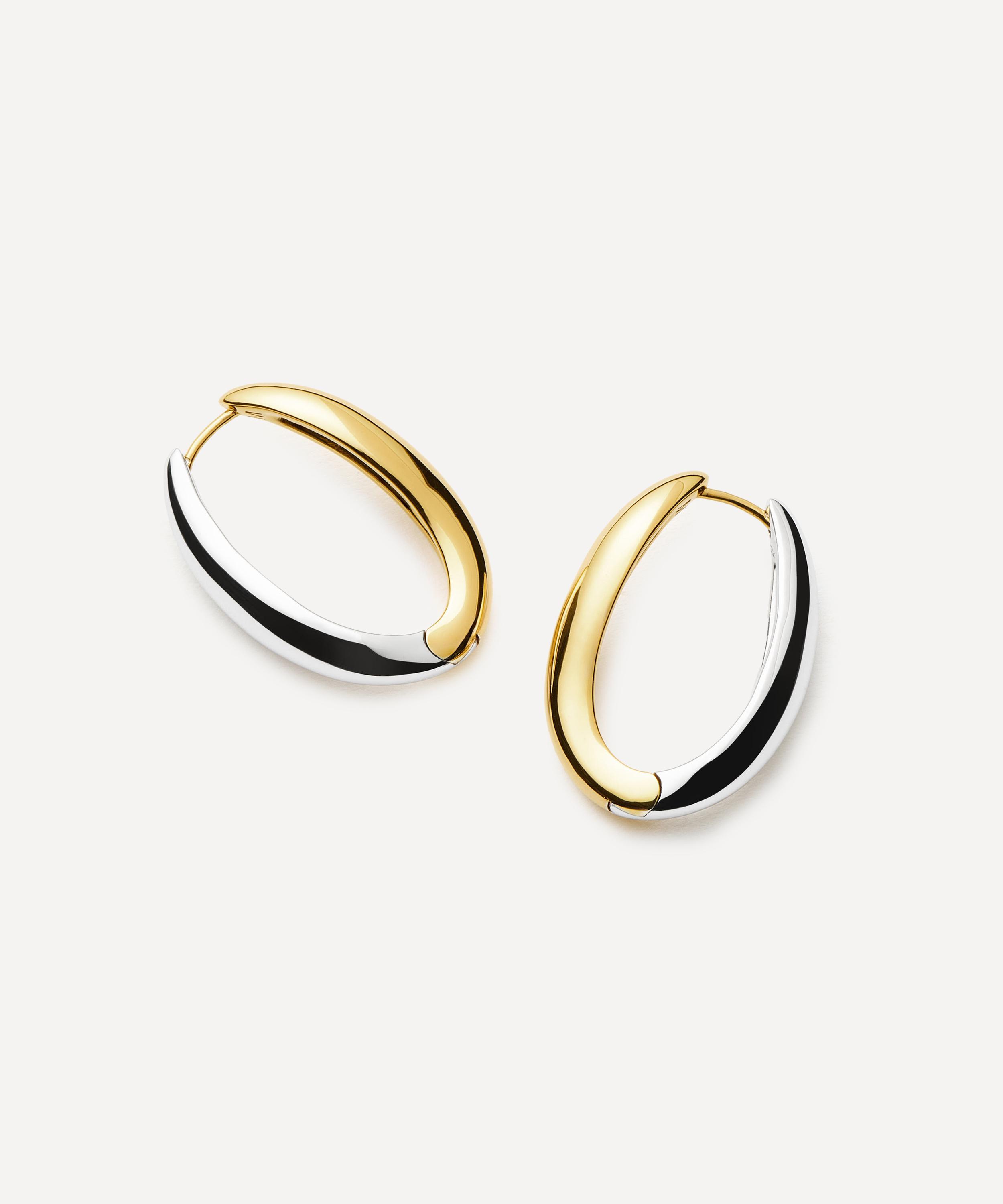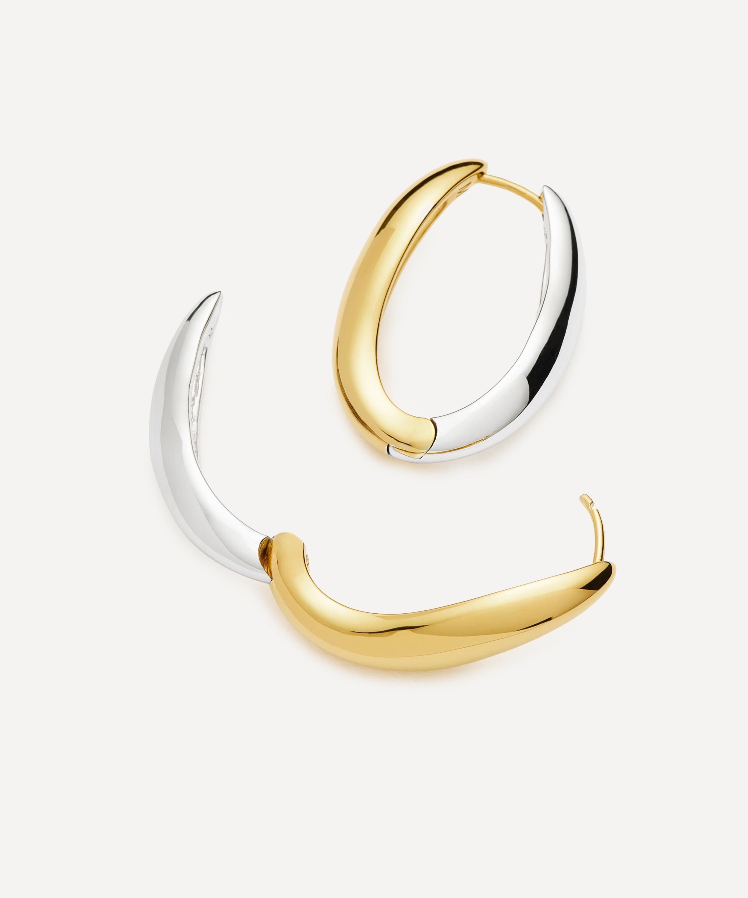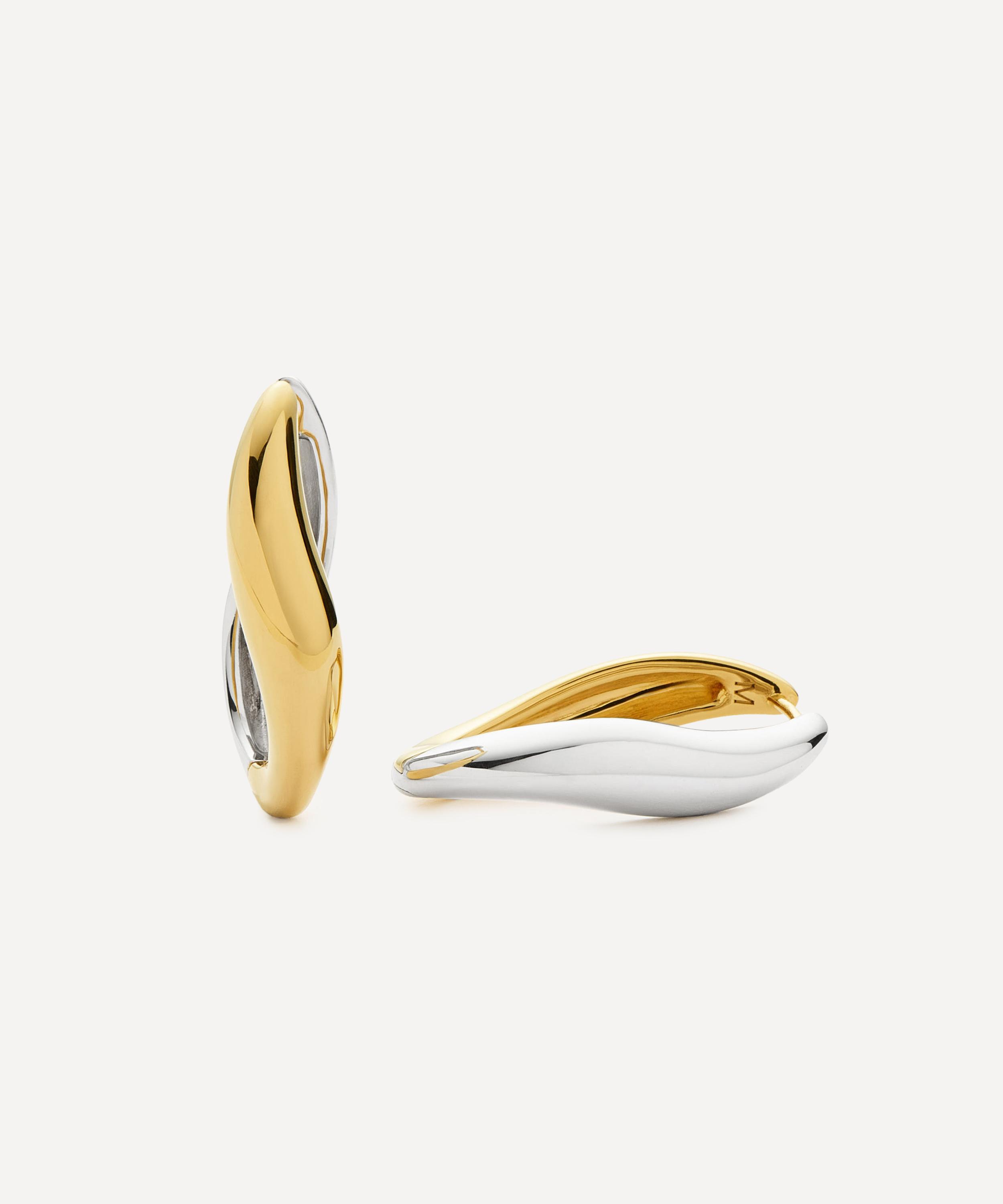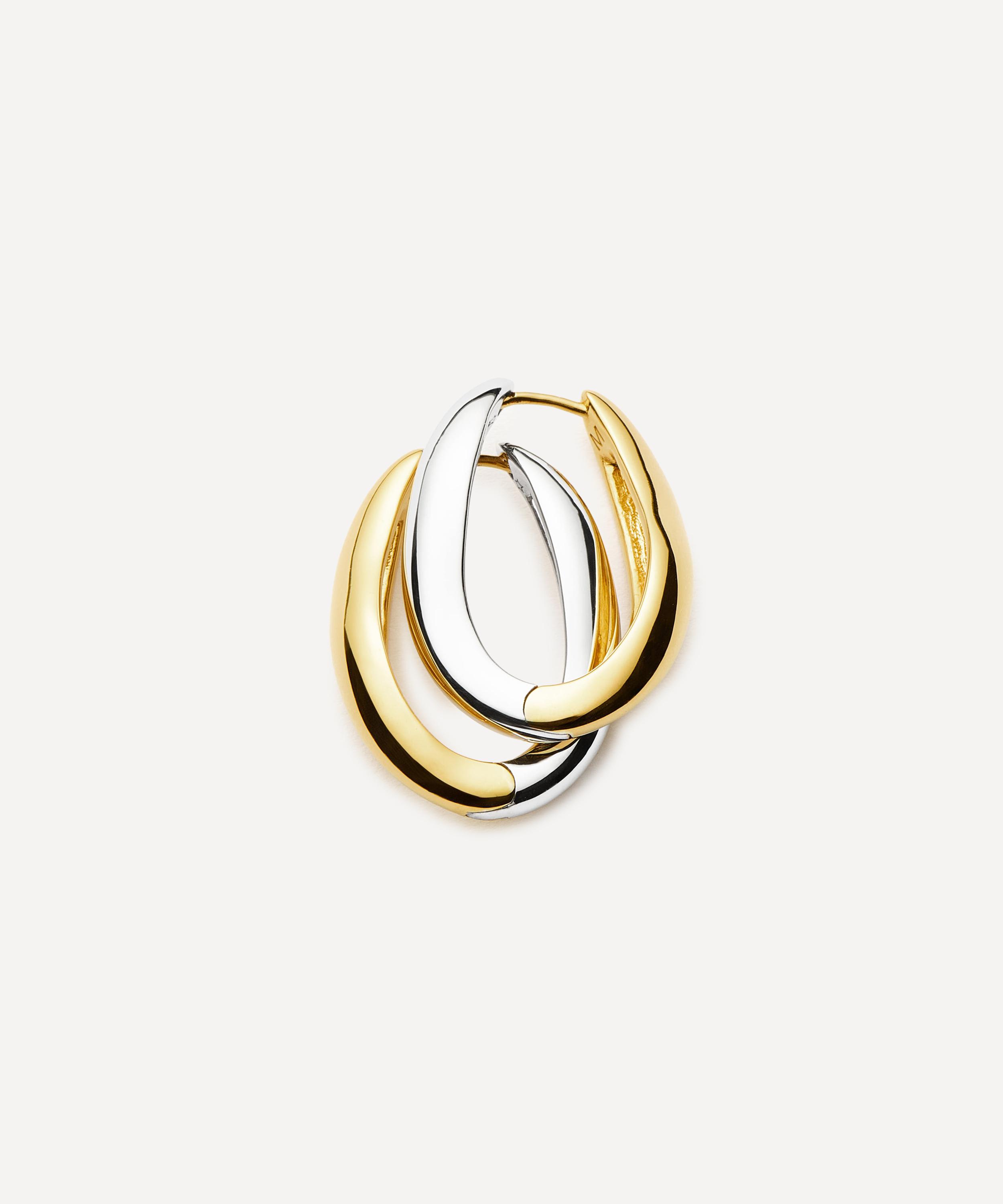 Made in collaboration with creative SAVISLOOK, this pair feature two large hoops, each featuring an organic, fluid silhouette in a two-tone design composed of 18ct gold-plated brass and rhodium-plated brass. Style them solo, incorporate into a curated ear stack or team with other mixed metal jewellery pieces for an eclectic look.