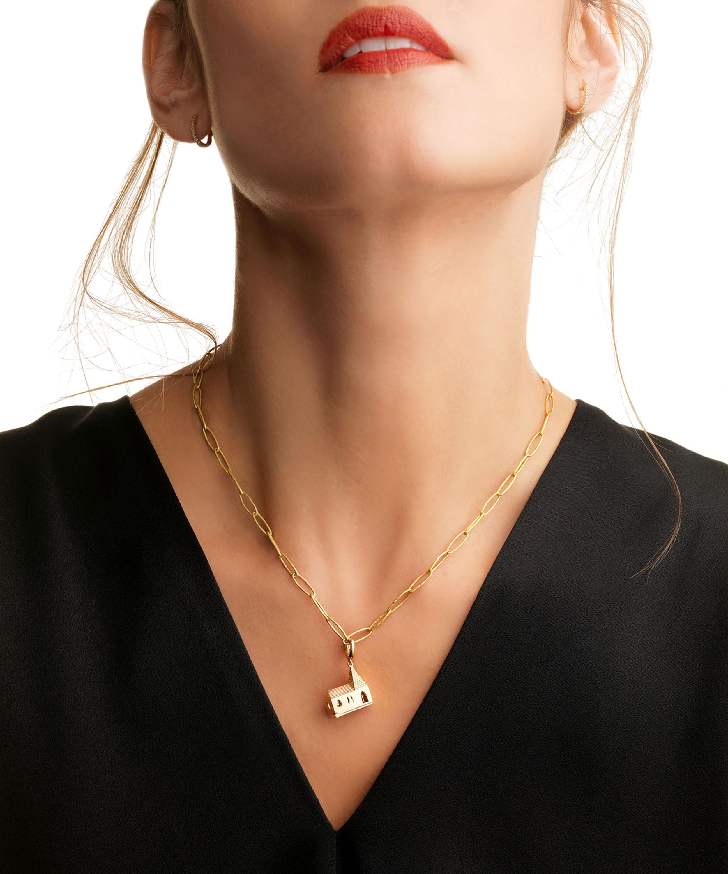 Combining Annoushka's intricate craftsmanship with the subversive beauty of The Vampire's Wife, this collaborative collection features a single charm bracelet and 13 charms inspired by Susie's favourite Nick Cave song lyrics. Crafted from high-polished 18 carat gold, the 'God Is In The House’ charm is characterised by a small sculptural church with a hinged base that opens to reveal a miniature bride and groom and a 'GOD IS IN THE HOUSE' engraving. Style it solo on a simple chain necklace or mix and match with others from the collection for your own custom curation of memories, immortalised in gold.