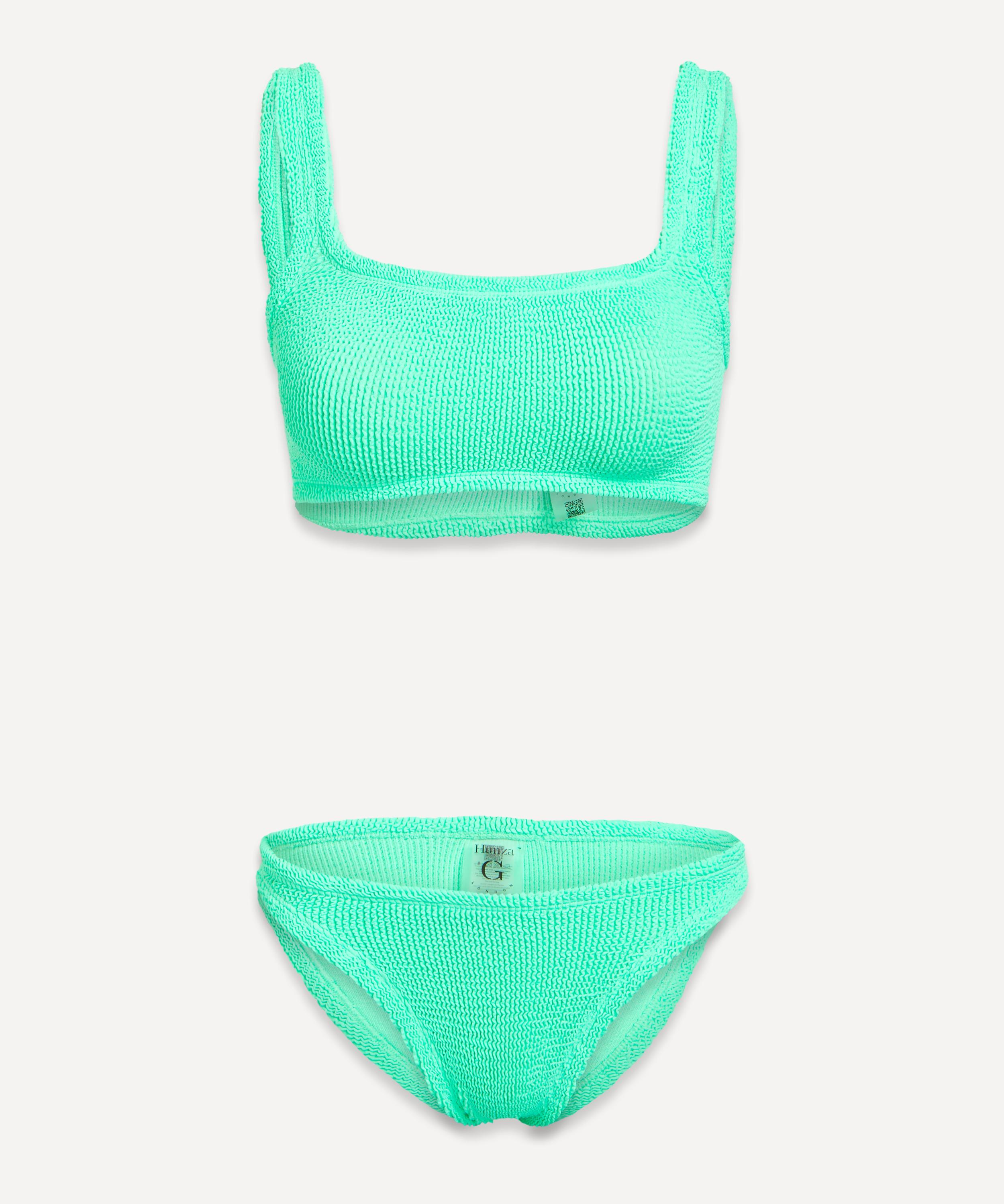 The Xandra bikini from Hunza G is a versatile addition to your new season edit, bringing an uplifting burst of colour to your look. Crafted from the brand's original crinkle fabric, this minimal two-piece boasts 80s inspired high-leg briefs and a supportive top with a distinctive square neckline and a low cut scooped back - practical and playful, it will bring a touch of vibrance to the swimming pool.