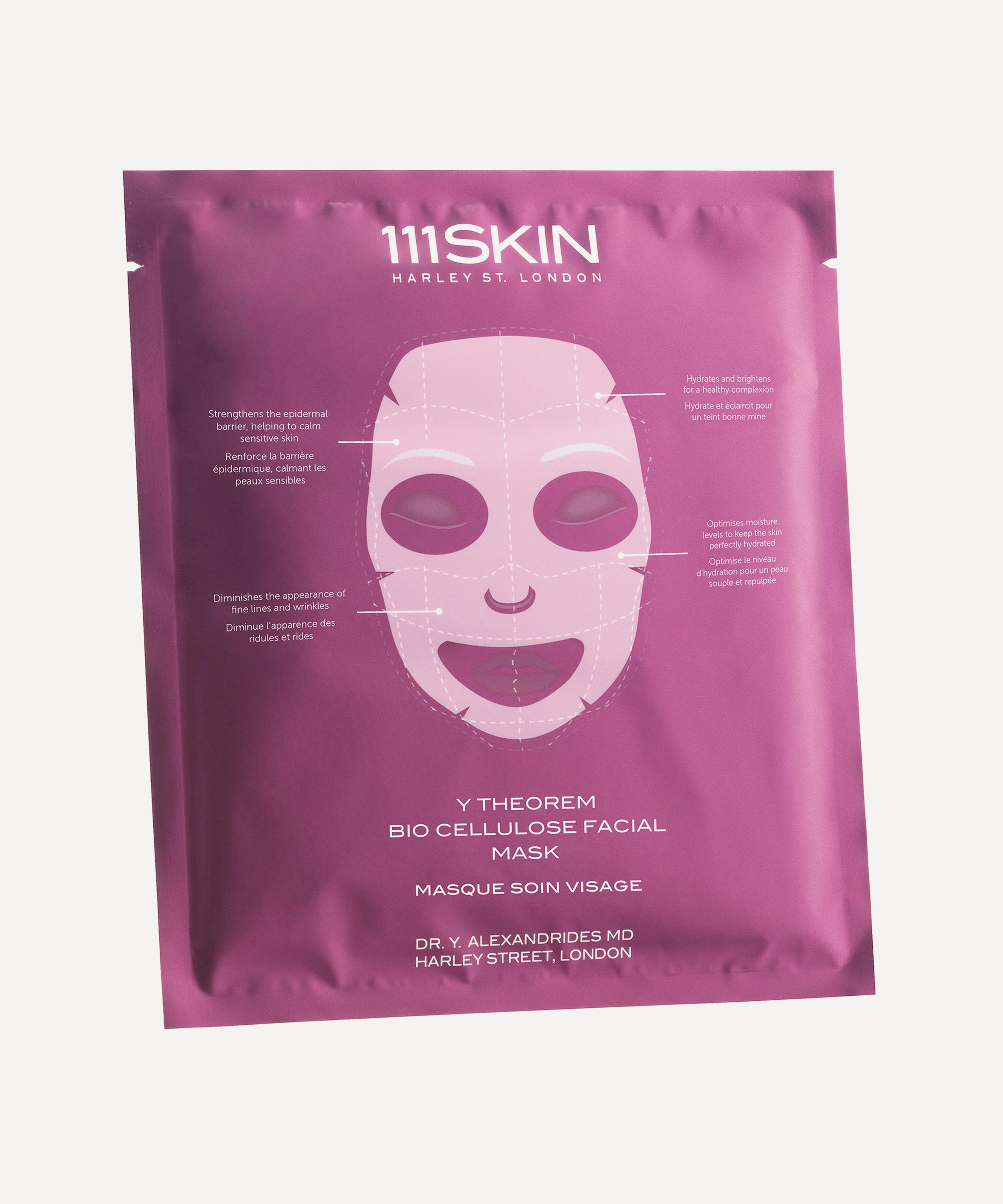 111SKIN's Y Theorem Bio Cellulose Facial Mask is a hydrating sheet mask designed to soothe, support and strengthen stressed skin for a repaired and rejuvenated appearance.