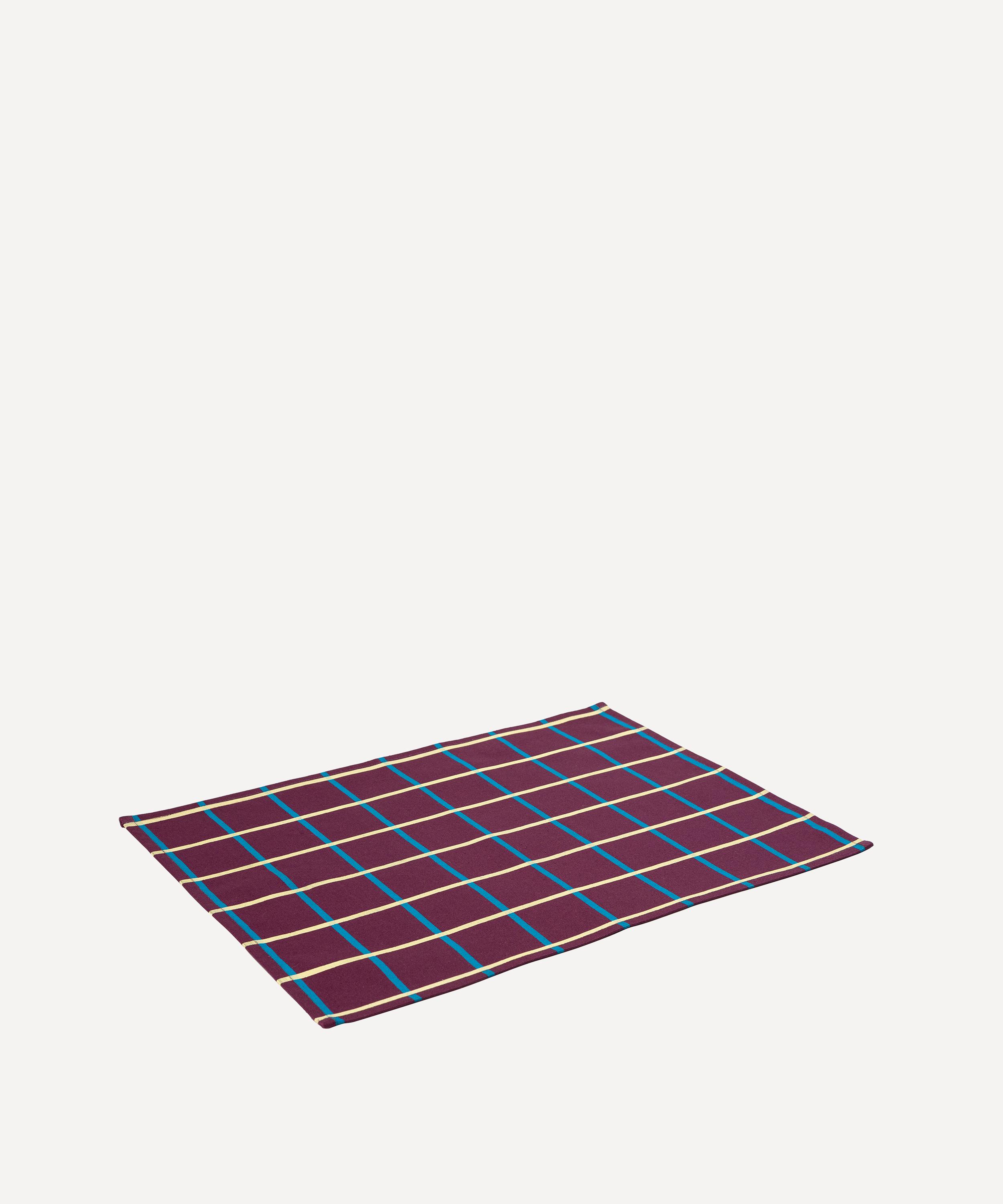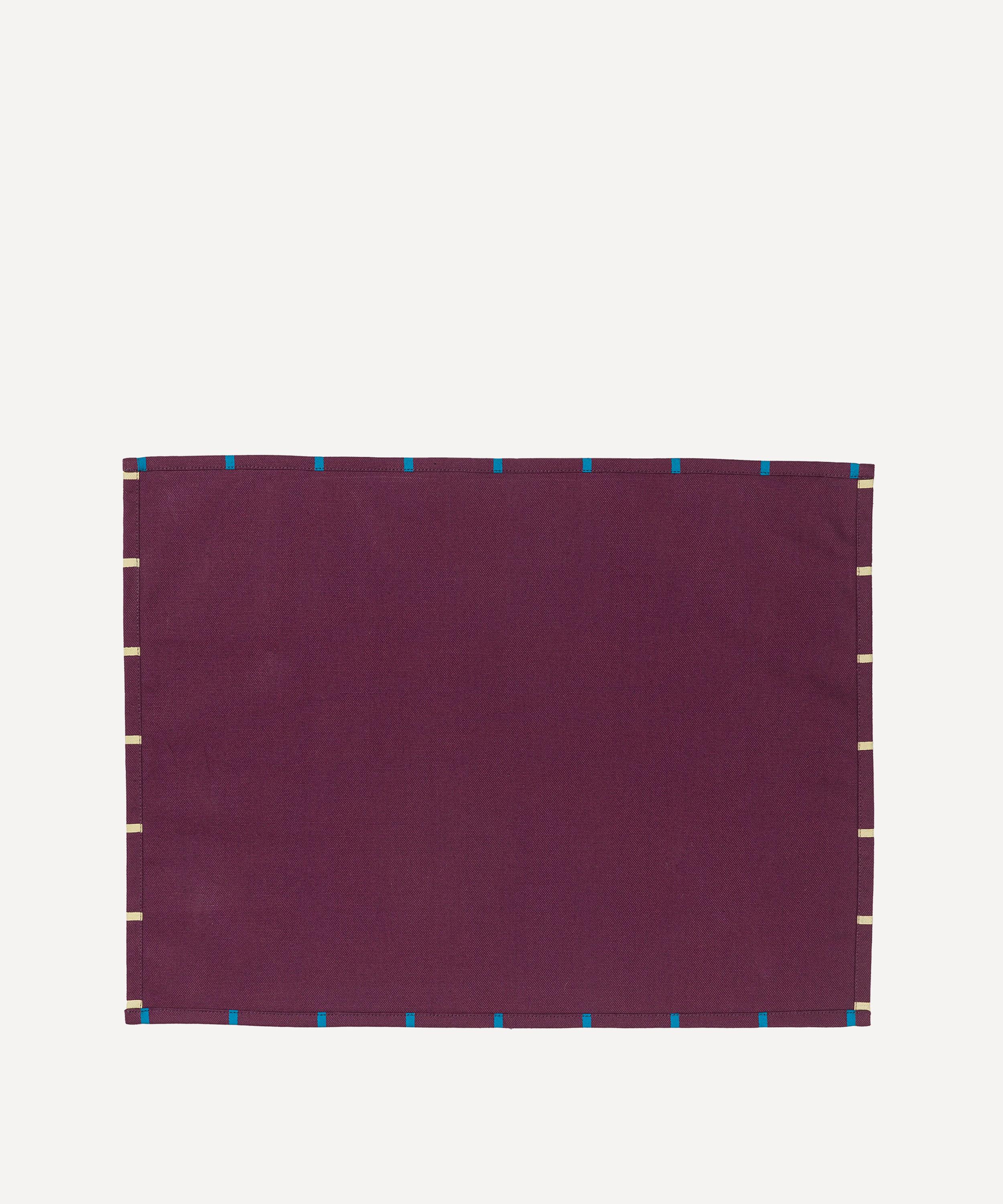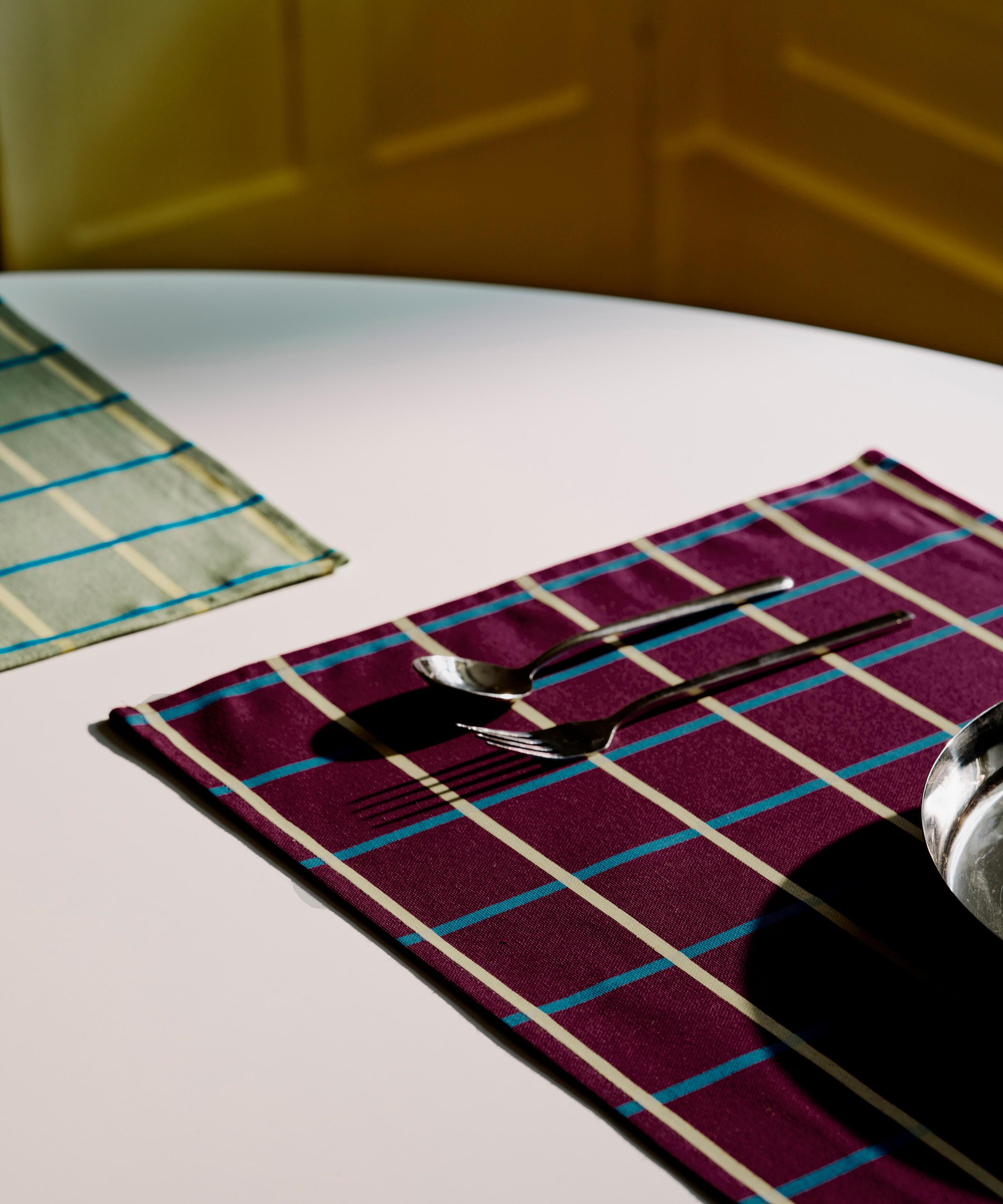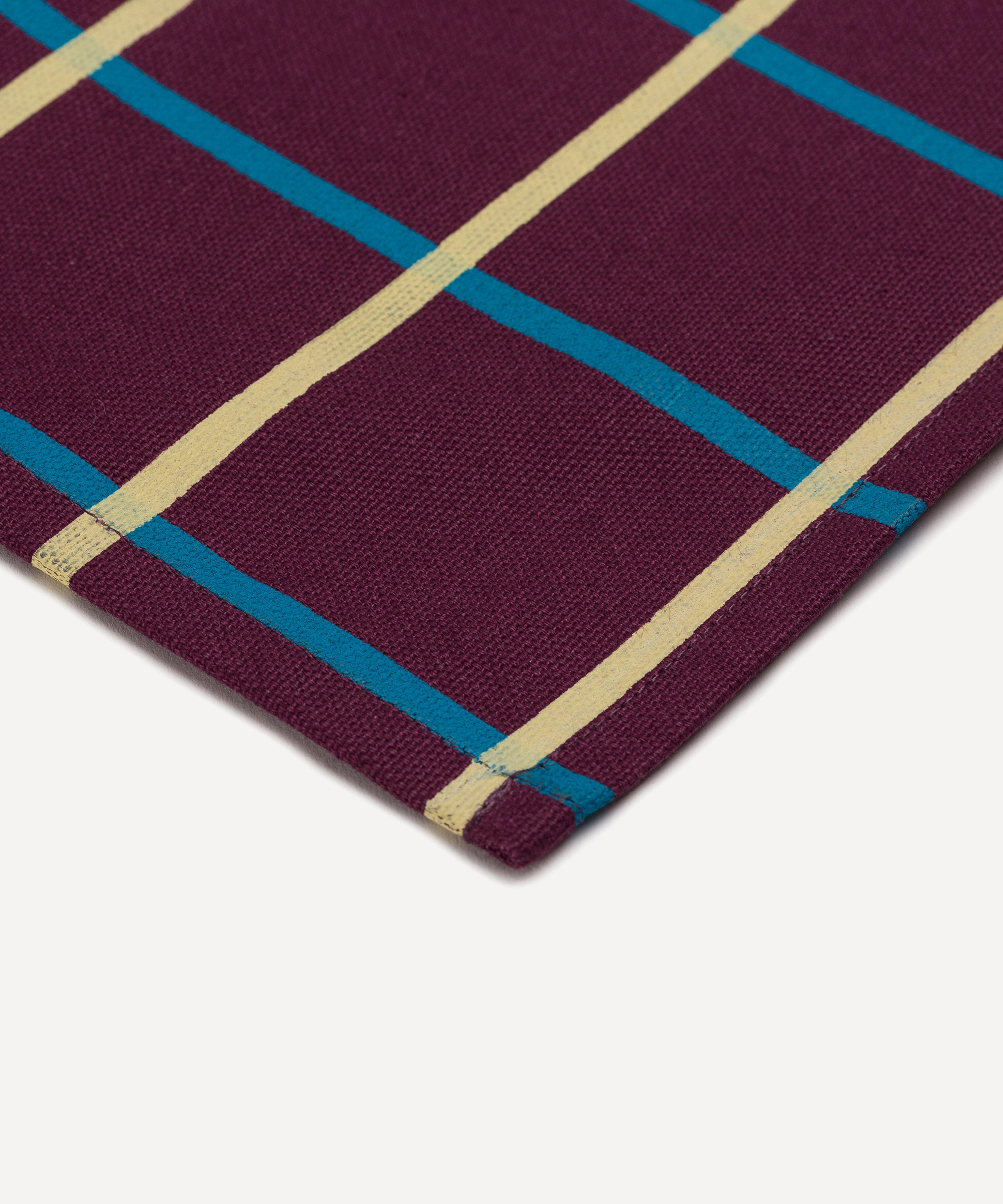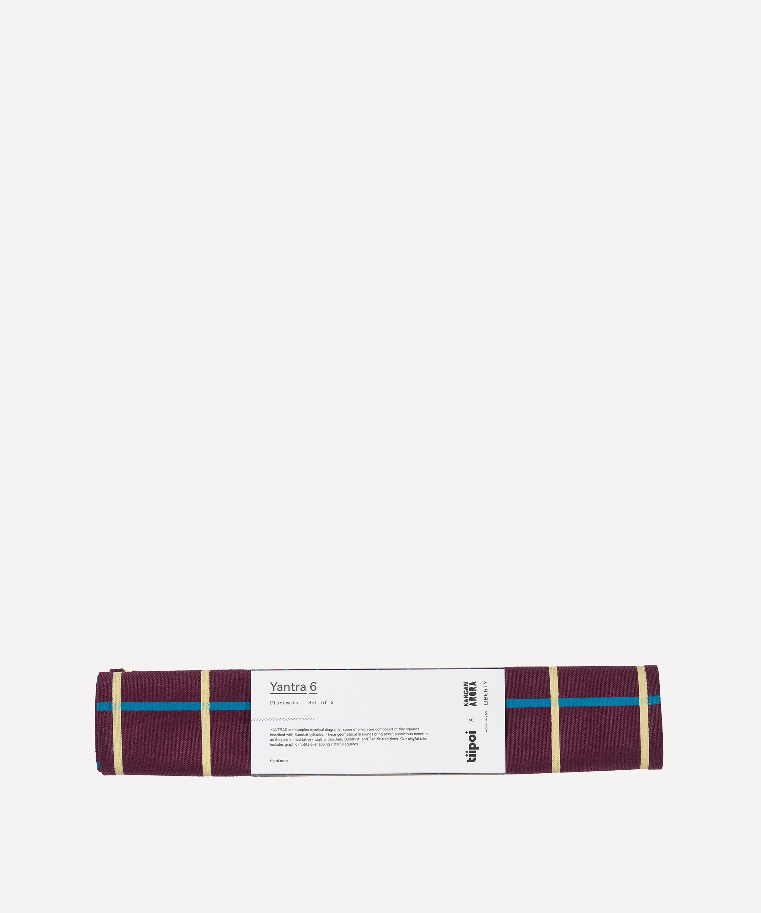 The Yantra placemat set from Tiipoi is inspired by the complex and mystical diagram Yantra. Crafted from canvas, this set includes two placemats featuring a geometric pattern in a two-tone, burgundy, and blue design – reminiscent of Yantras inscribed with Sanskrit syllables. These geometric diagram drawings are commonly used to bring about stillness and calm to aid in mediative rituals, here presented in Tiipoi’s playful take, use them to protect your surfaces and lend an effortless elegant touch to table settings.