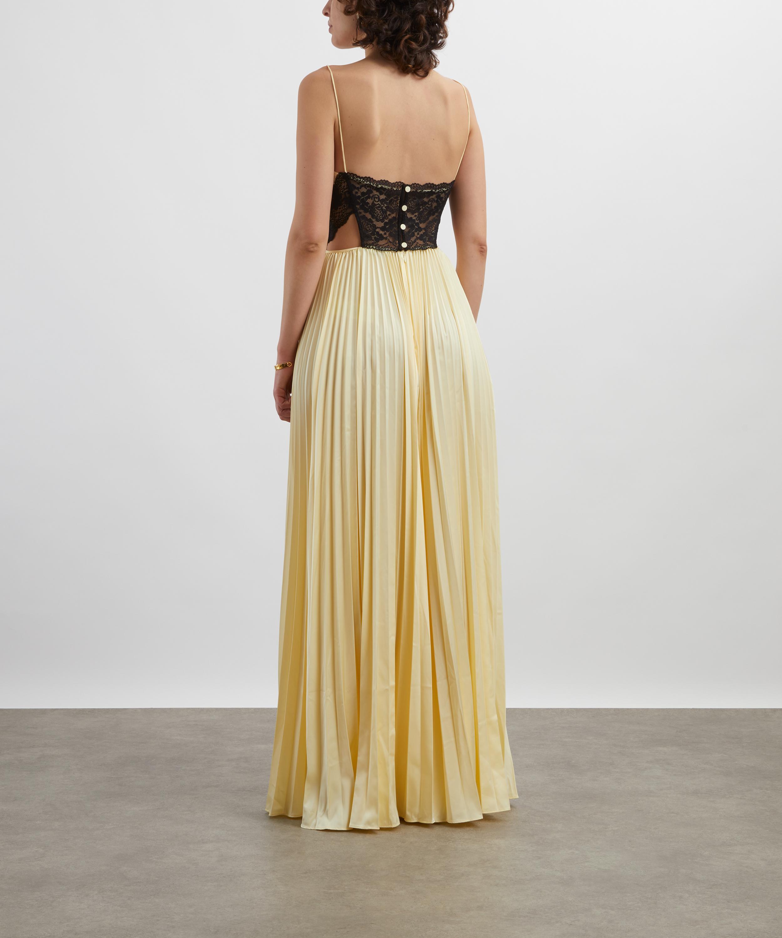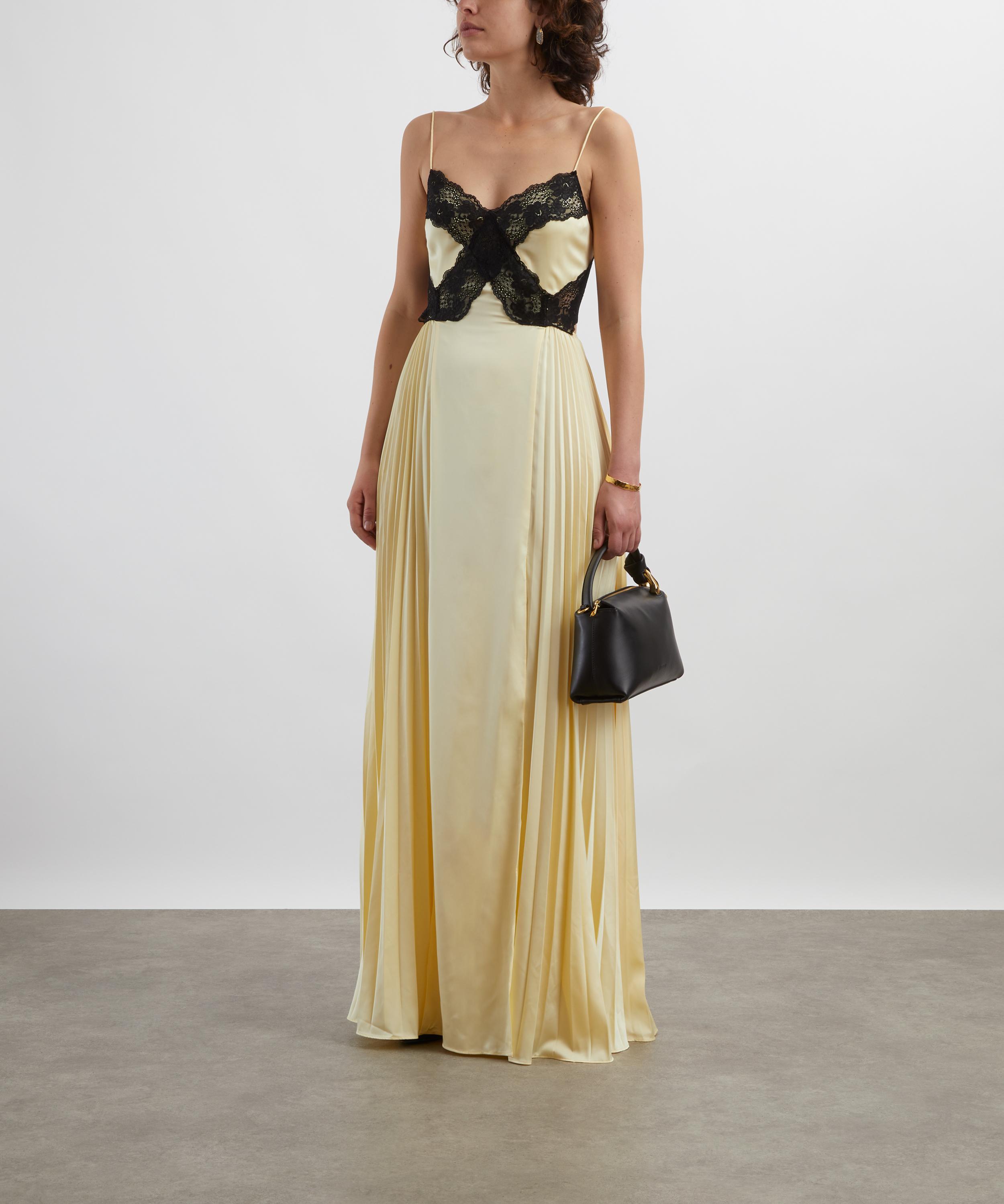 Nothing says romance quite like the Yellow Satin Lace Maxi Dress from Self-Portrait.