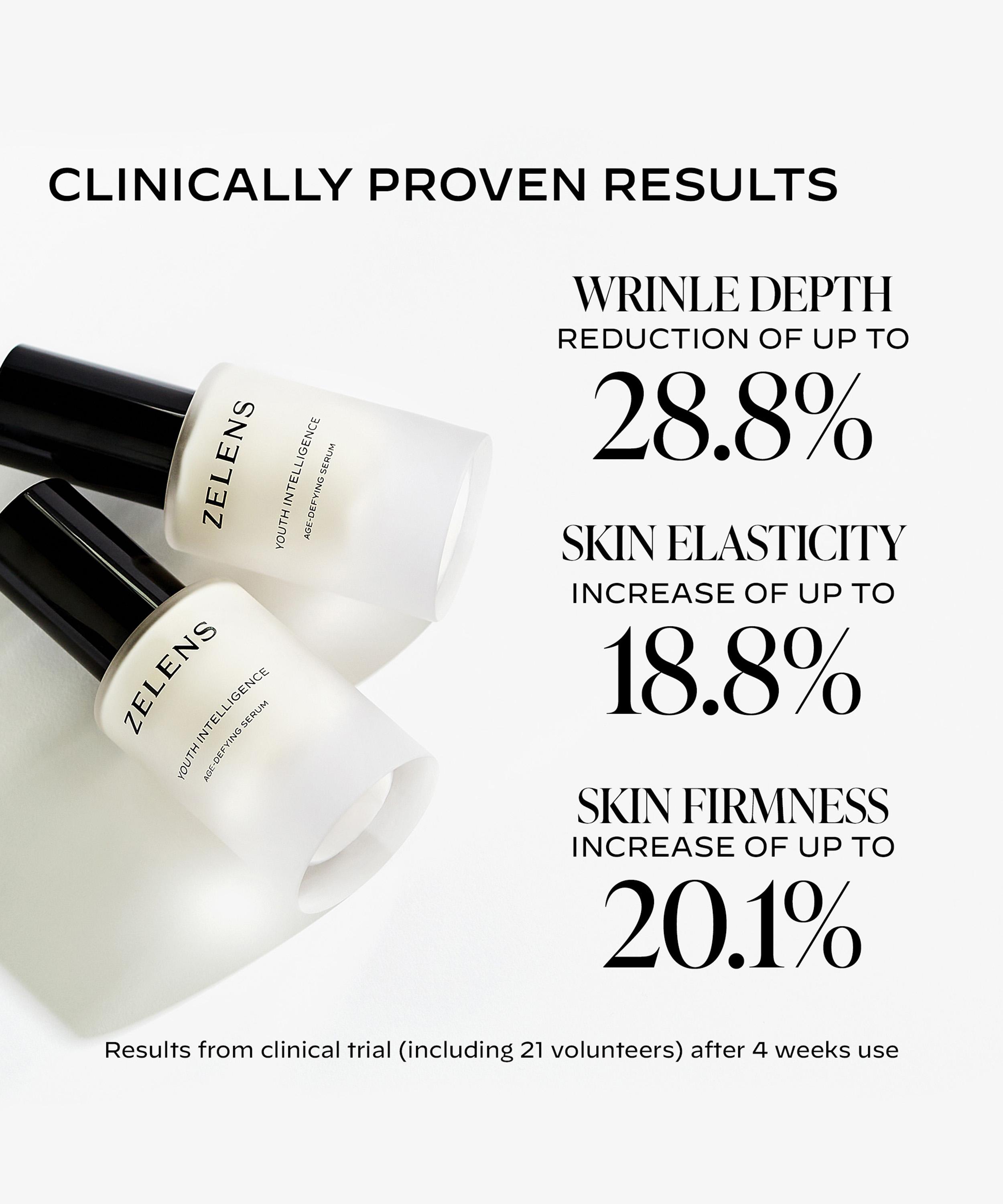 Youth Intelligence Age Defying Serum from Zelens is infused with a targeted complex of active ingredients and eight fermented algae, combined to reduce the signs of ageing for a smoother and firmer complexion.