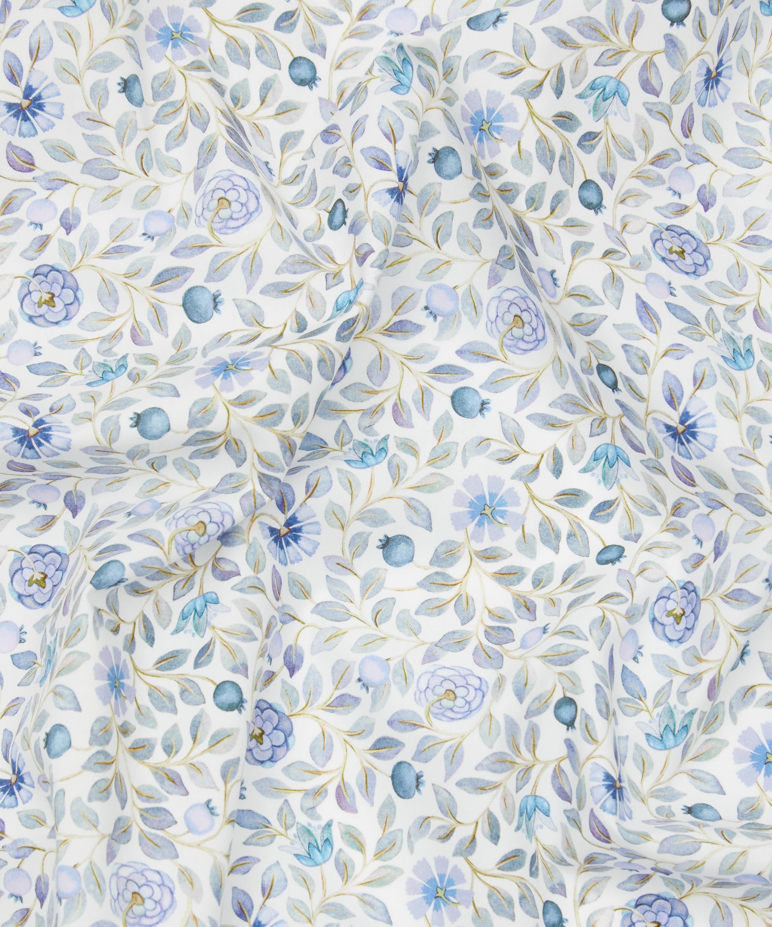 Recognised for her significant contribution to the Arts and Crafts movement, May Morris was the inspiration behind this highly refined, trailing floral design. Hand-painted in the Liberty studio, Zara Thanrose features an array of blooming flowers including peonies, lilies, and cornflowers, cascading amidst dense meandering leafy trails and charming accents of rosehip berries. This print is part of the anniversary collection’s final chapter, Collectibles. Offering a design for each decade, this timeline of hero prints encapsulates 150 years - exploring the design house’s varied and influential handwriting while honouring key moments of creativity and discovery.