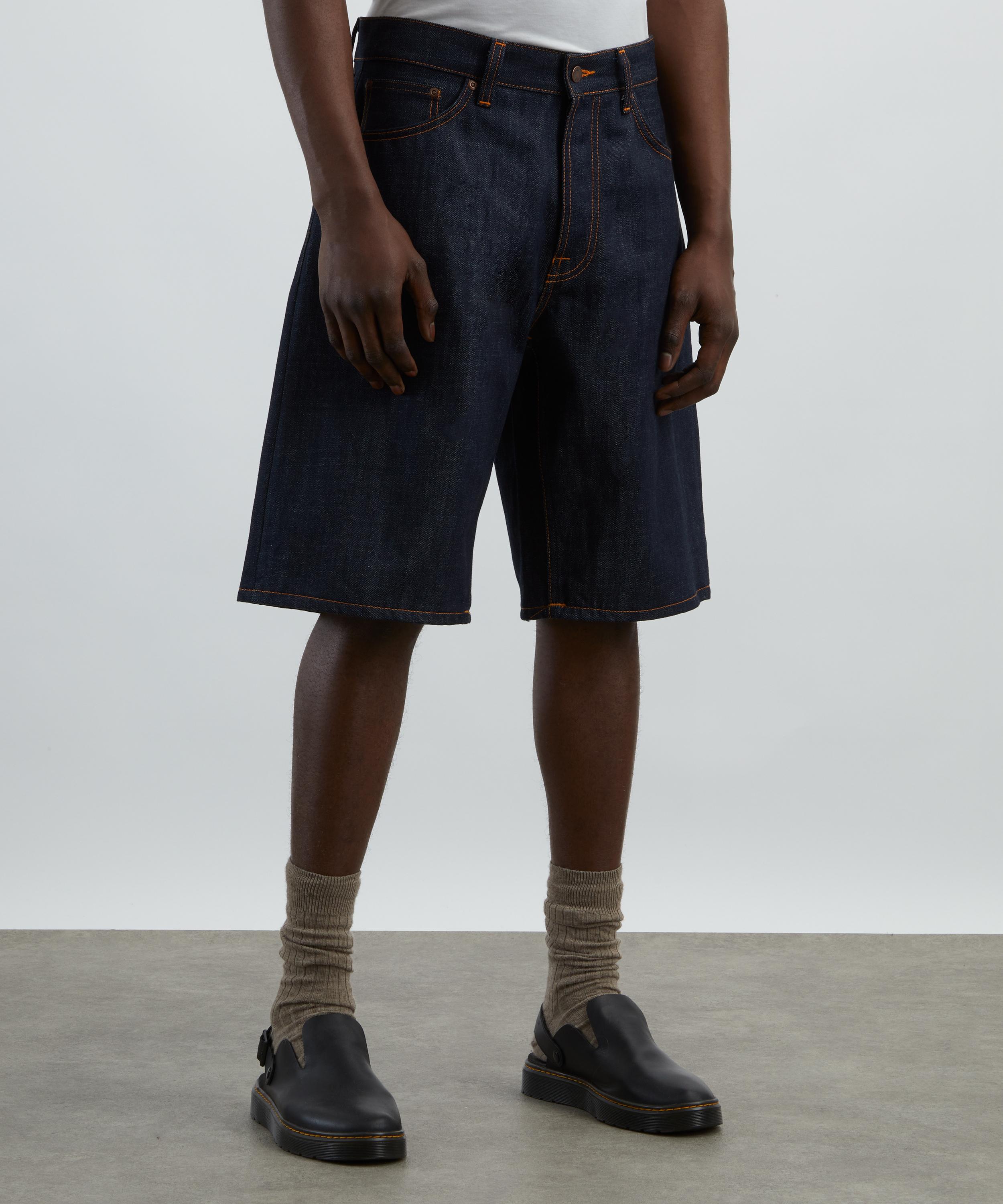 Crafted from exceptionally streaky denim, these wide-leg, loose-fit shorts offer a relaxed silhouette with classic five-pocket styling, copper hardware, and contrast orange stitching. A cooler alternative to your go-to jeans, they're perfect for warmer days without compromising on style.