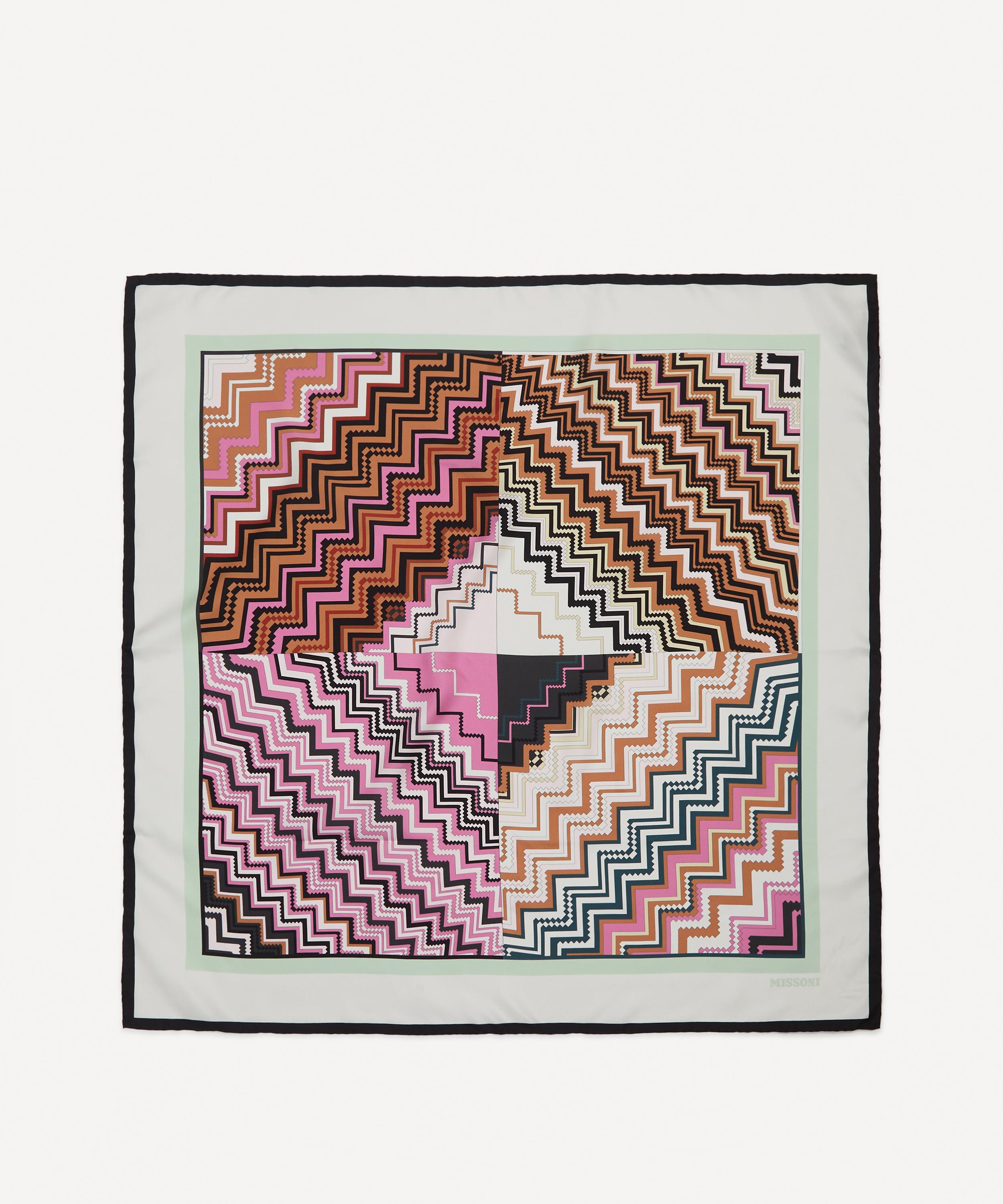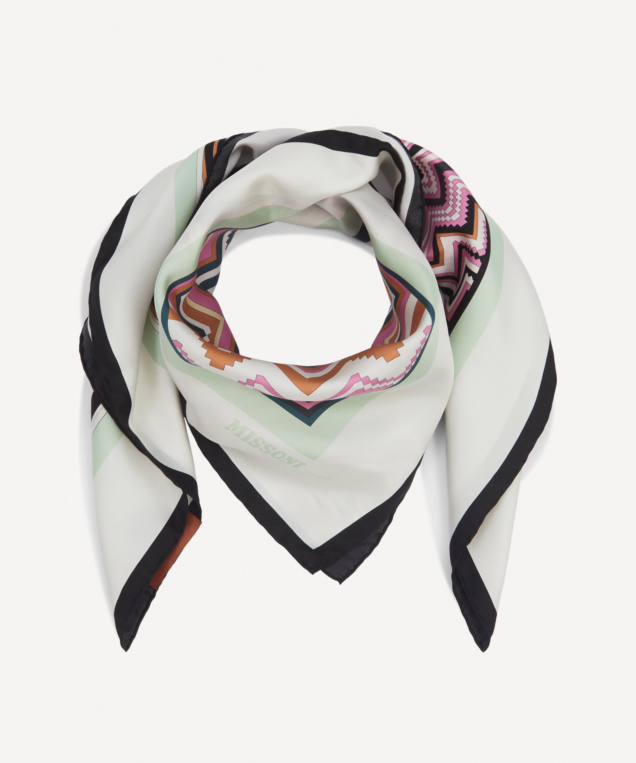 This silk scarf from Missoni exemplifies the Italian label’s trademark zig-zag pattern. Woven from pure silk, the eccentric design features a light-coloured zig-zag design, finished with a contrasting border and stitched edges – knot it at the neck or tie it around the handle of your favourite tote bag to bring a hint of colour to your everyday look.