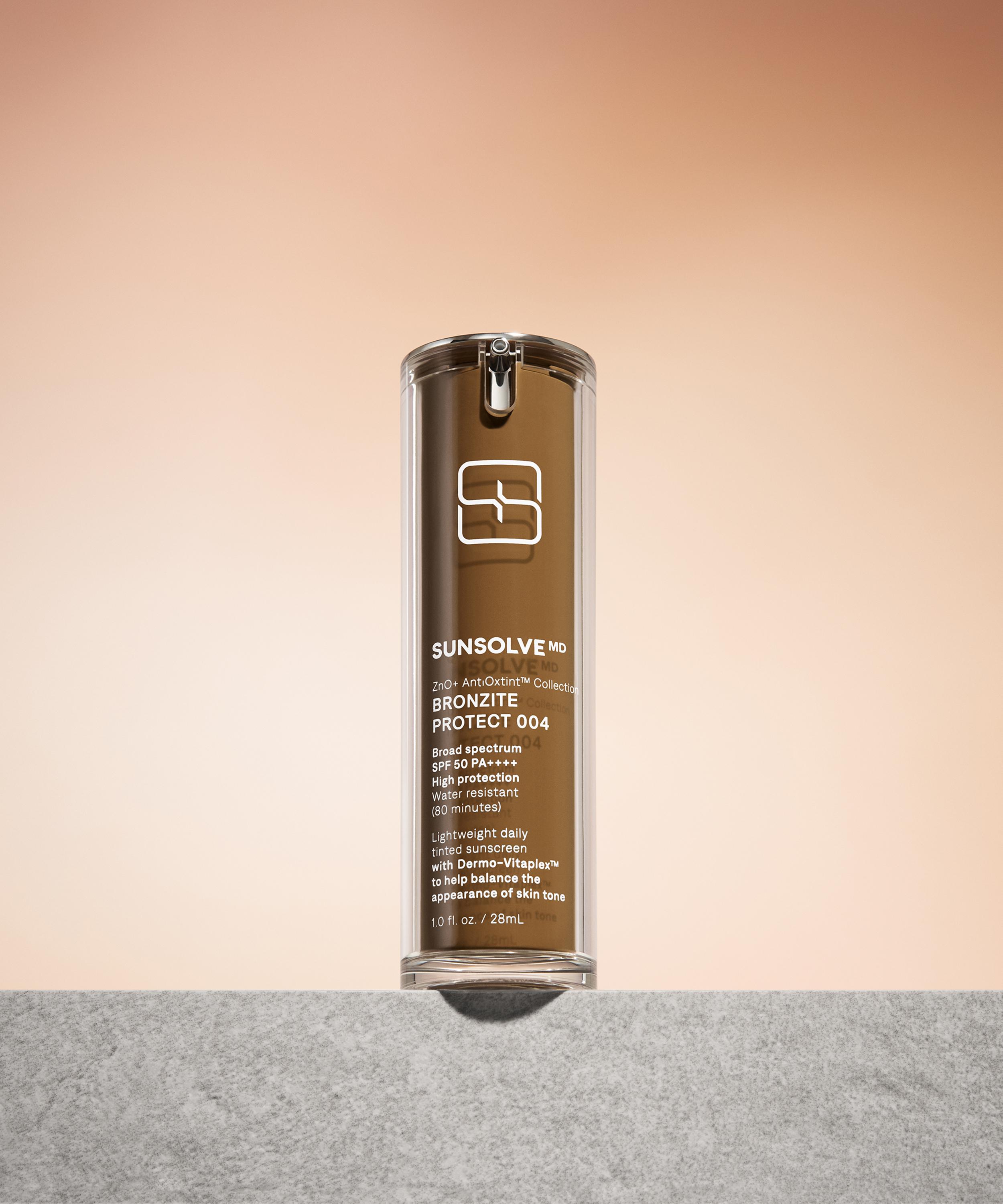 Enhance your skin and blur imperfections with SunsolveMD’s daily-wear ZnO + AntiOxtint Bronzite Protect, a multi-tasking tinted mineral sunscreen with broad spectrum SPF 50 that instantly evens your skin tone with a soft-matte, silky finish.