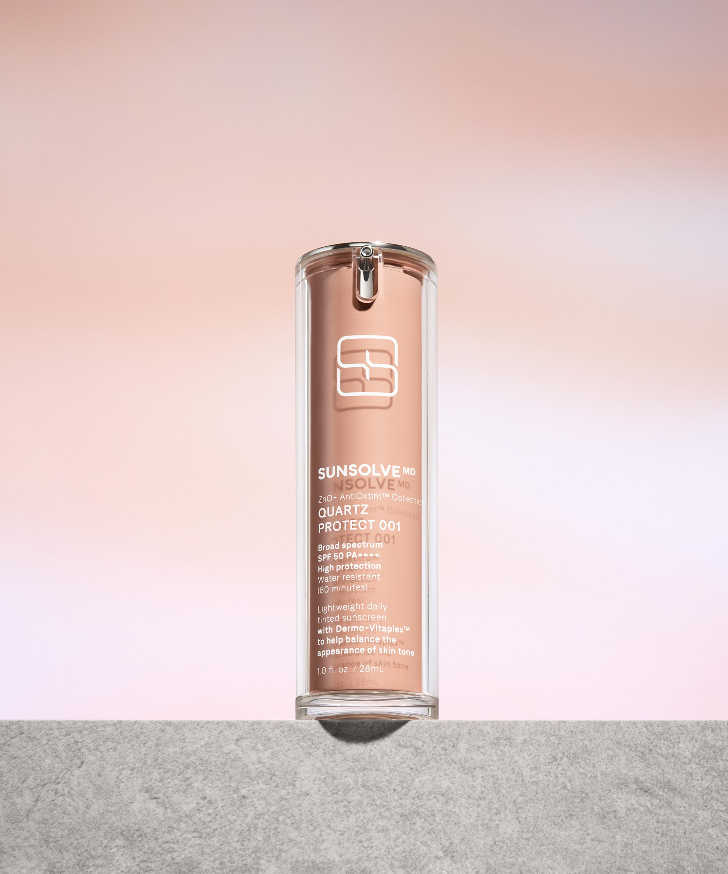 Enhance your skin and blur imperfections with SunsolveMD’s daily-wear ZnO + AntiOxtint Quartz Protect, a multi-tasking tinted mineral sunscreen with broad spectrum SPF 50 that instantly evens your skin tone with a soft-matte, silky finish.